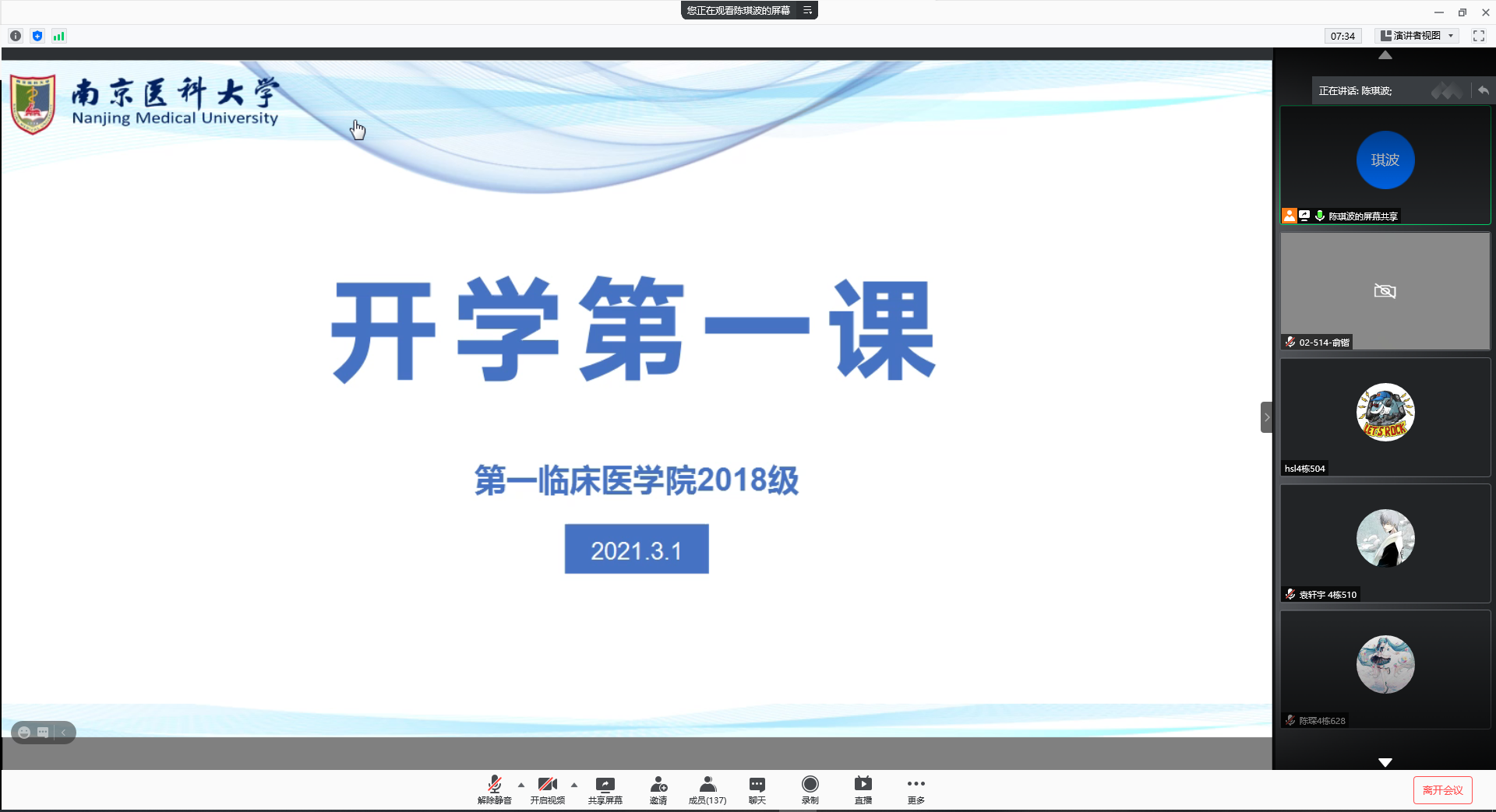3月1日晚,第一临床医学院2018级召开新学期年级大会。2018级辅导员熊潇老师、陈琪波老师,以及2018级全体成员参加会议。