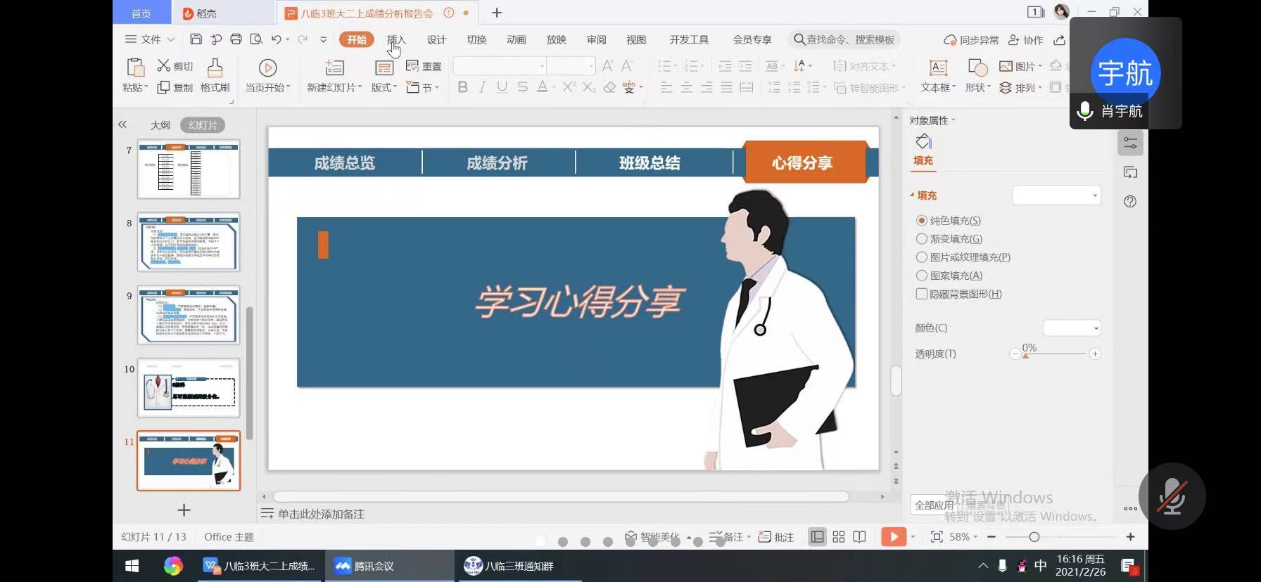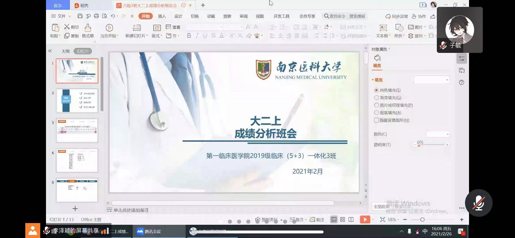 2月26日下午,第一临床医学院2019级临床医学(5+3)一体化3班的全体同学参加了以“深度分析,砥砺前行”为主题的线上成绩分析班会。本次班会由学习委员李泽颖同学主持。