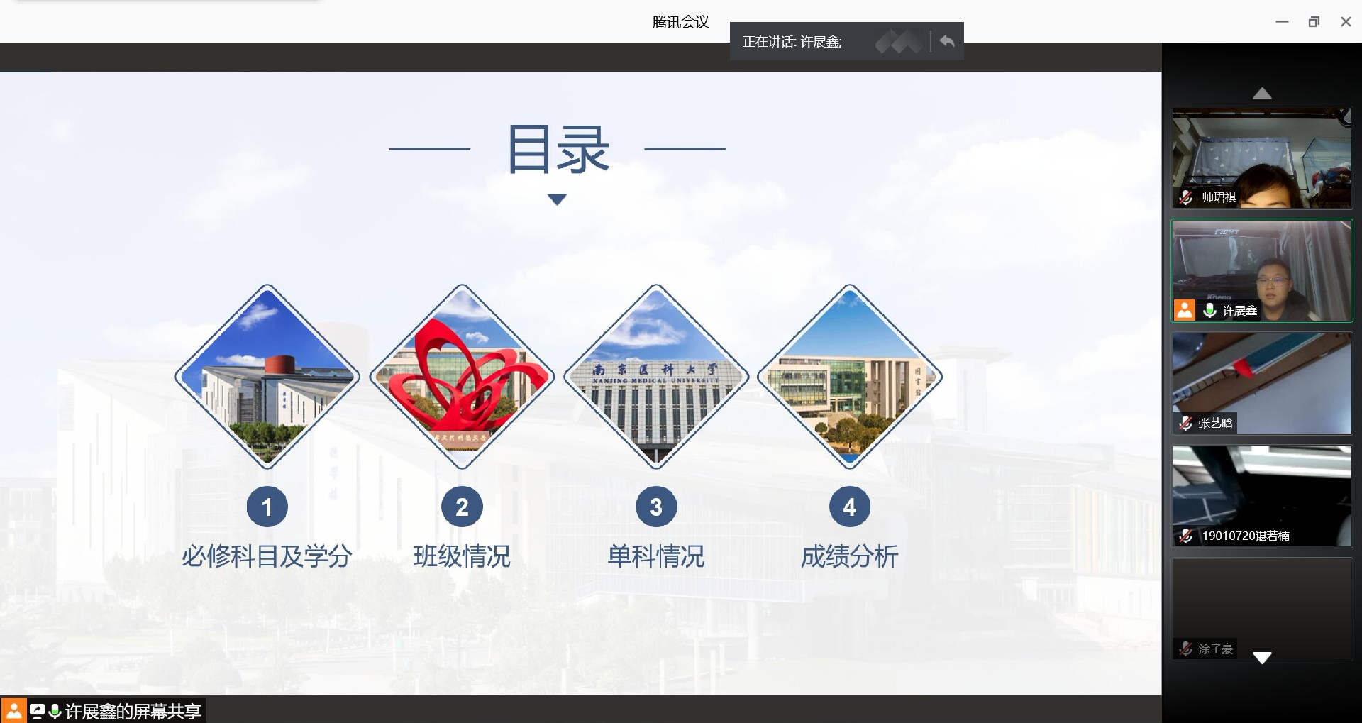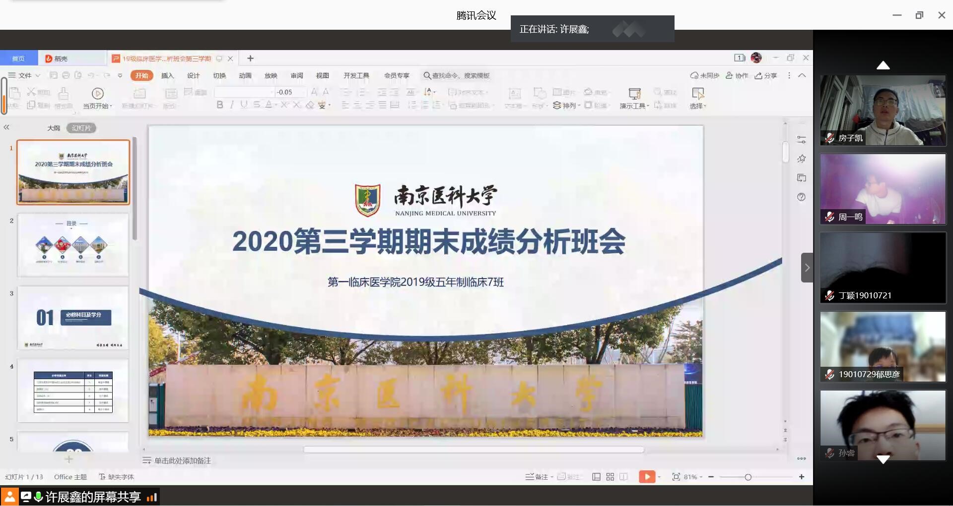 3月11日下午,第一临床医学院2019级临床医学五年制7班的全体同学借助网络平台召开了成绩分析班会。本次会议由学习委员许展鑫同学主持,全班同学共同参加。