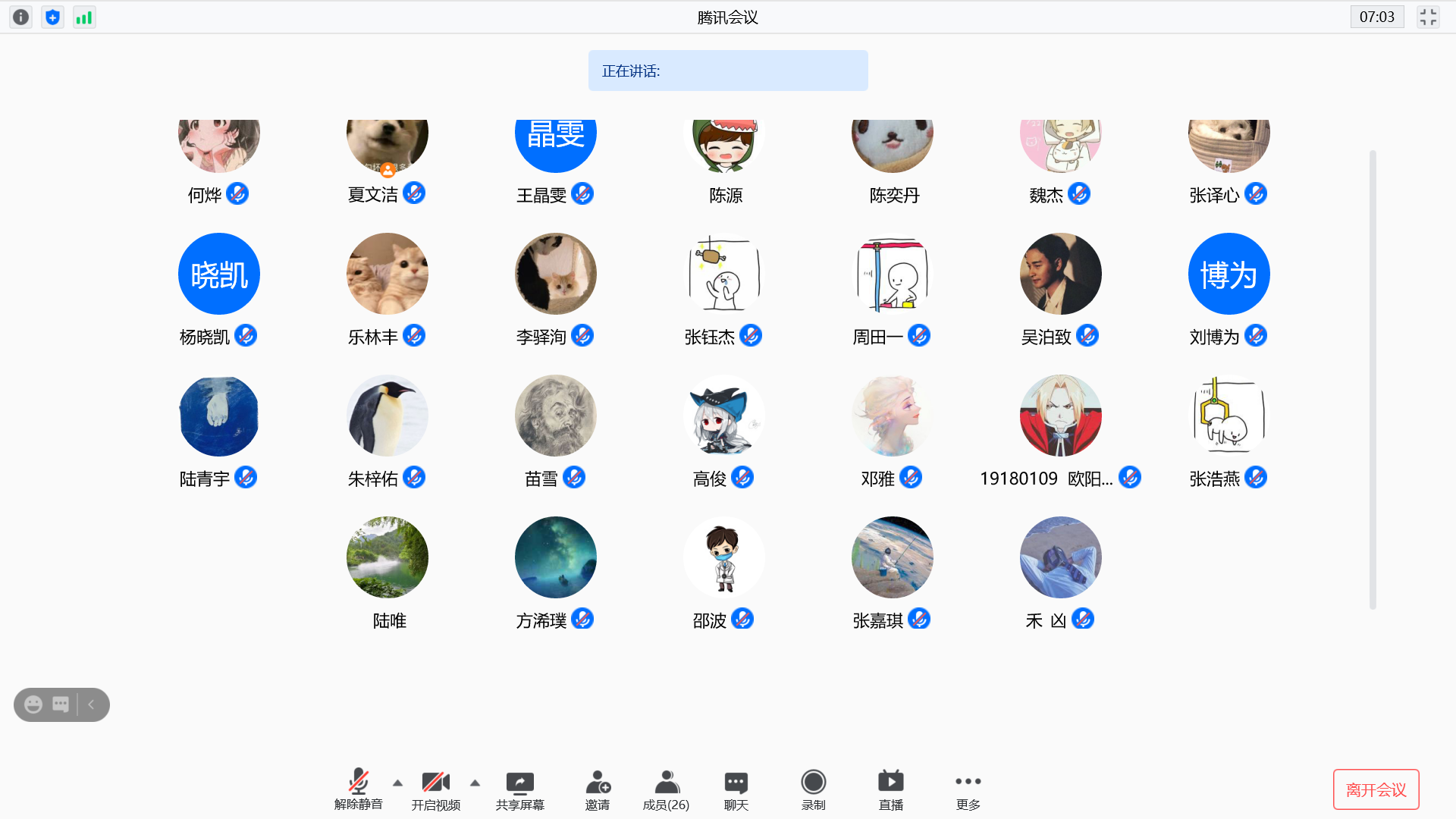 首先,夏文洁简略地介绍了本次班会的流程。接着,她向同学们展示了三个学期以来,本班级的学习成绩的变化,突出表扬了取得进步、成绩一直稳定前列的同学。然后,学习委员向大家讲述了她对于班级学习情况的发现和建议。最后,同学们进行了线上的学习感悟交流,本次线上班会圆满结束。