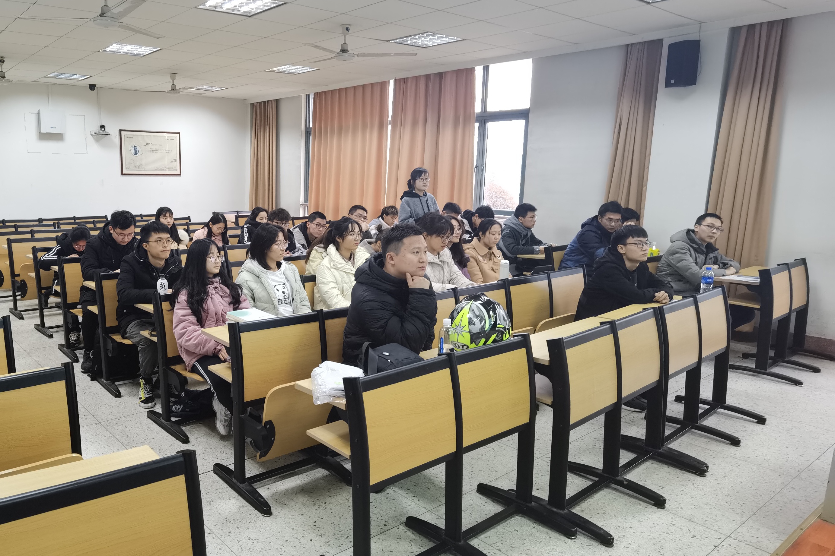 最后,由兼职班主任黄老师进行学习生活经验分享,关心询问学习情况,他谈到“去理解去敬重别人对生命的态度”是希望我们记住一生的哲理,后又讨论了不同年代的人的相处之道,希望我们能理解每一种人的生活方式等等。