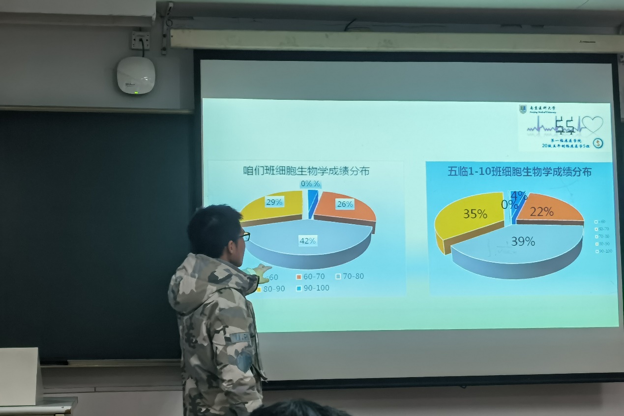 为激发同学们的学习热情,提高同学们的自我反思意识,在之后的学习生活中不断提升,3月13日晚,第一临床医学院20级临床医学五年制5班开展“回顾过往,展望未来”期末成绩分析主题班会。本次活动由班长余礼春同学主持,临床医学五年制5班团支部全体同学参加。