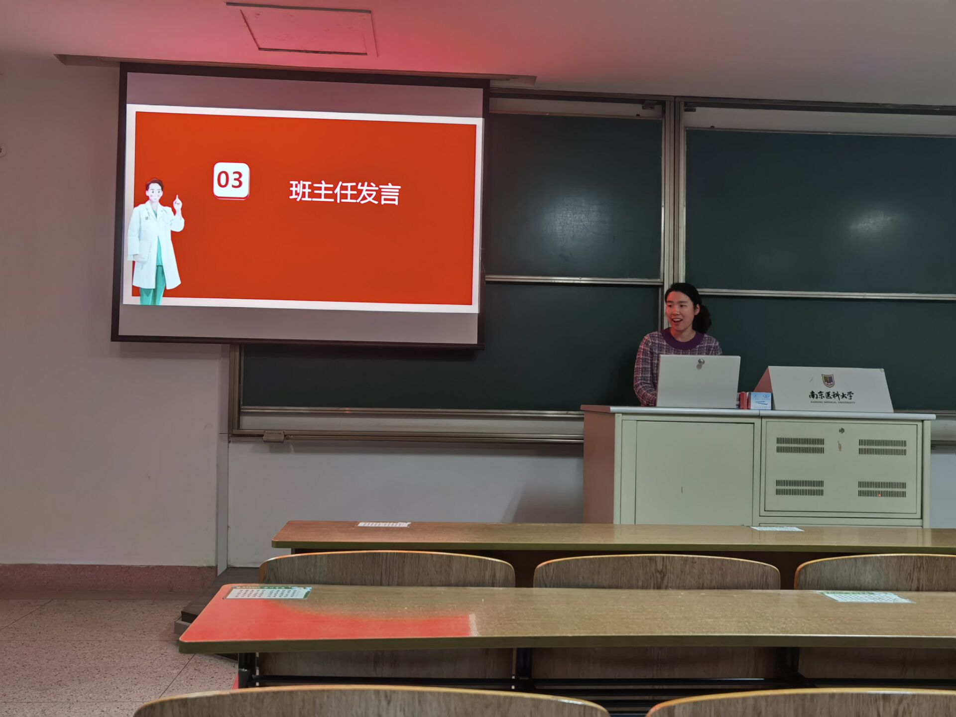 2021年3月9日,第一临床医学院2020级临床10班在江宁校区明达楼K213教室举办“以心迎新”主题班会。本次班会由班长黄佳同学主持,一附院影像医学与核医学主治医师、班级兼职班主任马红老师受邀出席。
