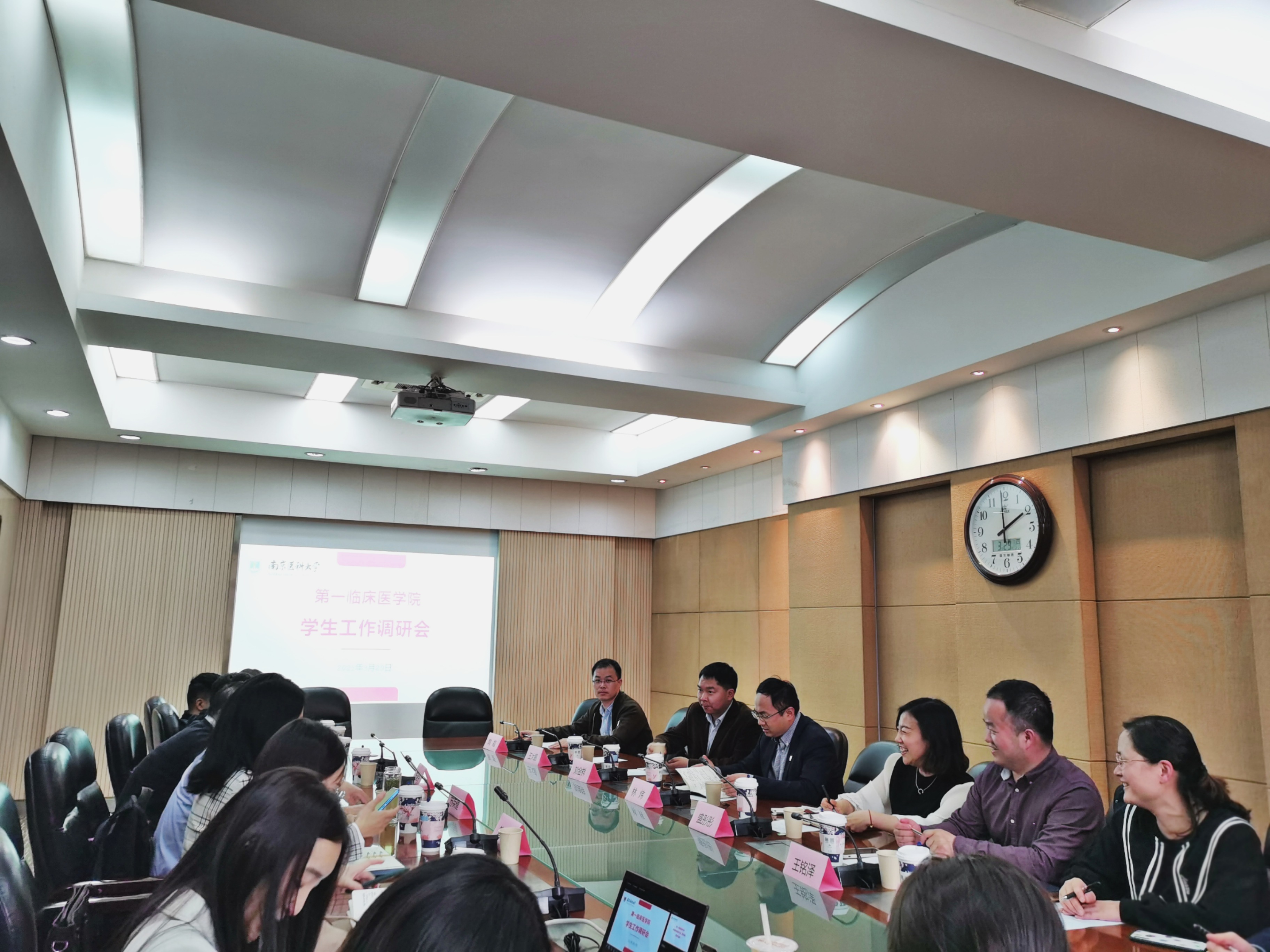 调研会上,苏荣健书记代表学院对林炜处长、盛彤彤书记调研组一行的到来表示热烈欢迎,他表示我院将积极支持学校构建“大学工、大思政、大教育”的育人新格局,贯彻2021年全校学生工作大会精神,在安全有序地开展各项学生工作的基础上,结合第一临床医学院学生工作规模大、分布广、关注度高等特点,开展医学特色活动,打造学生工作品牌,为学校高水平建设提供一临力量。管园园副书记代表学院向调研组介绍我院学生工作特色、2020年所取得的成绩及辅导员队伍建设的基本情况,随后辅导员就各自分管学生工作的开展情况进行了汇报。