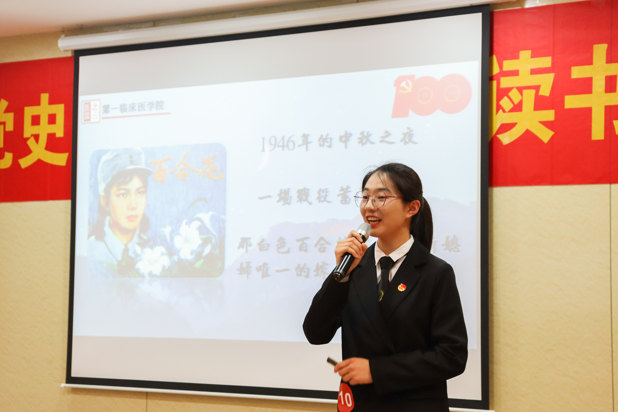 此外,一等奖获得者孙雨婷同学晋级校级读书报告会,于4月23日晚代表我院参加南京医科大学2021年党史学习教育校级读书报告会并斩获二等奖。