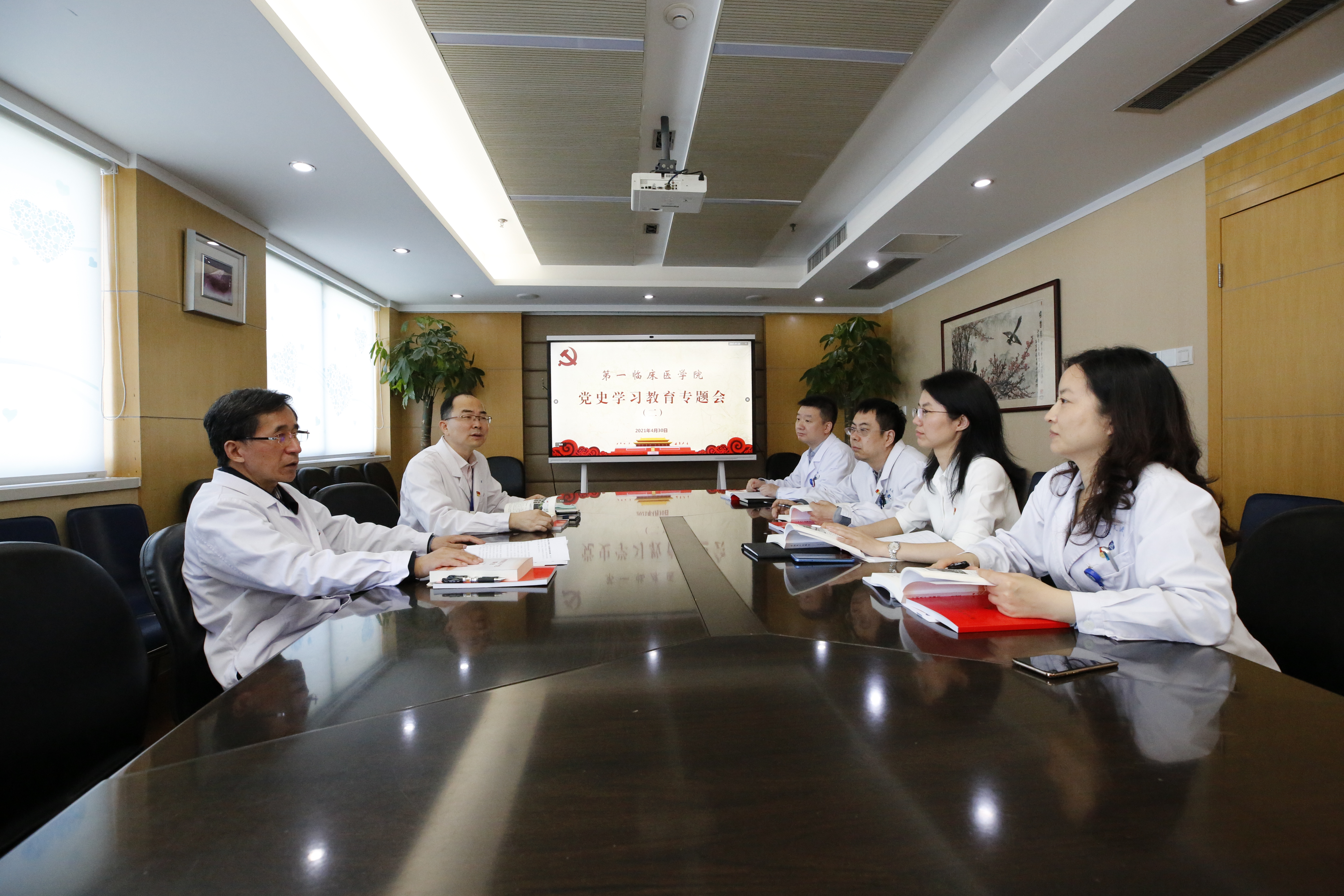 4月30日,第一临床医学院党委理论中心组召开党史学习教育专题会议,学院中心组成员参与本次会议,本次专题学习会由院党委常务副书记苏荣健主持。