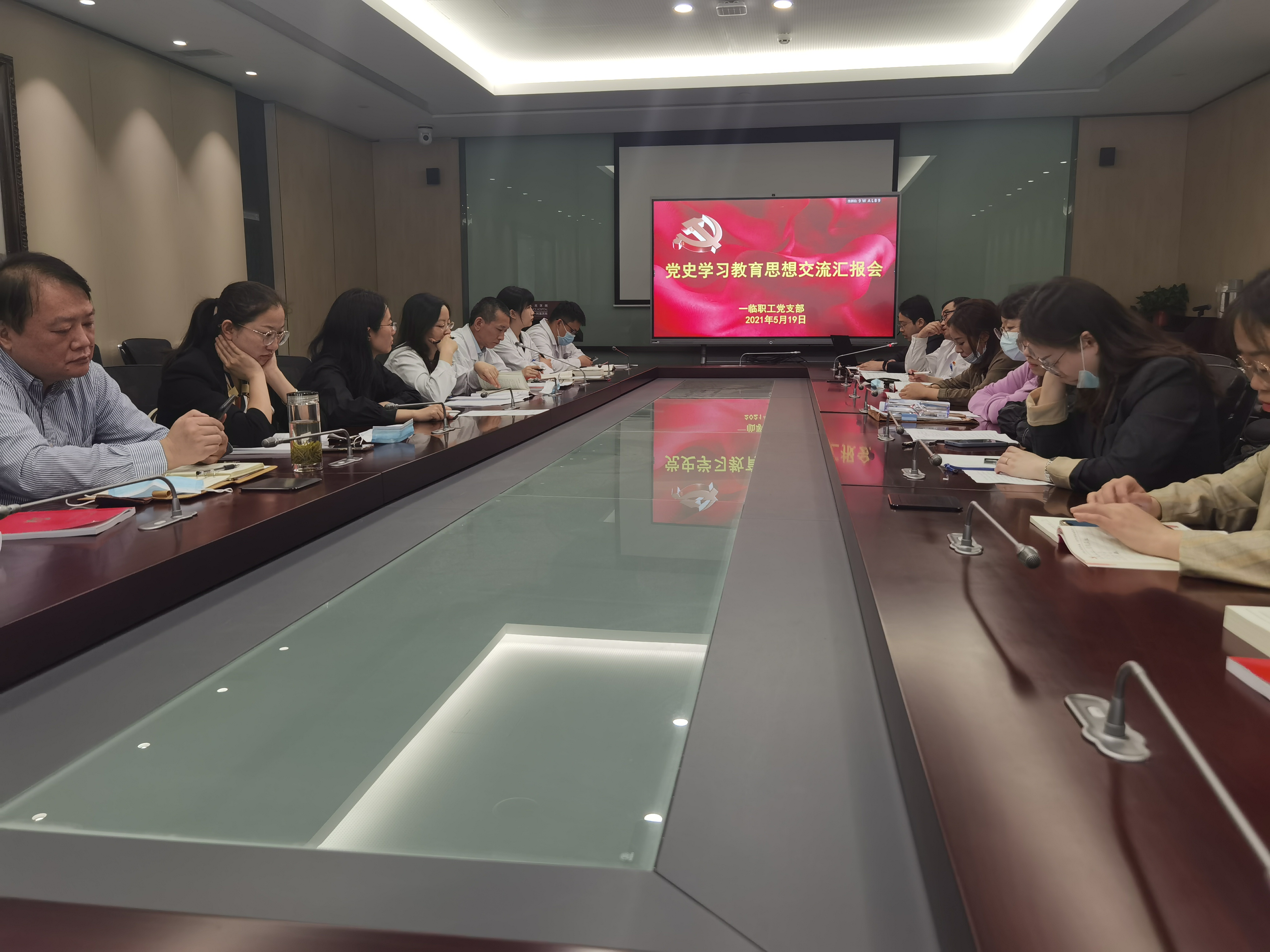 5月19日上午,第一临床医学院职工党支部党史学习教育思想交流汇报会在一附院新大楼举行,全体职工党员参加会议。党支部书记主持。