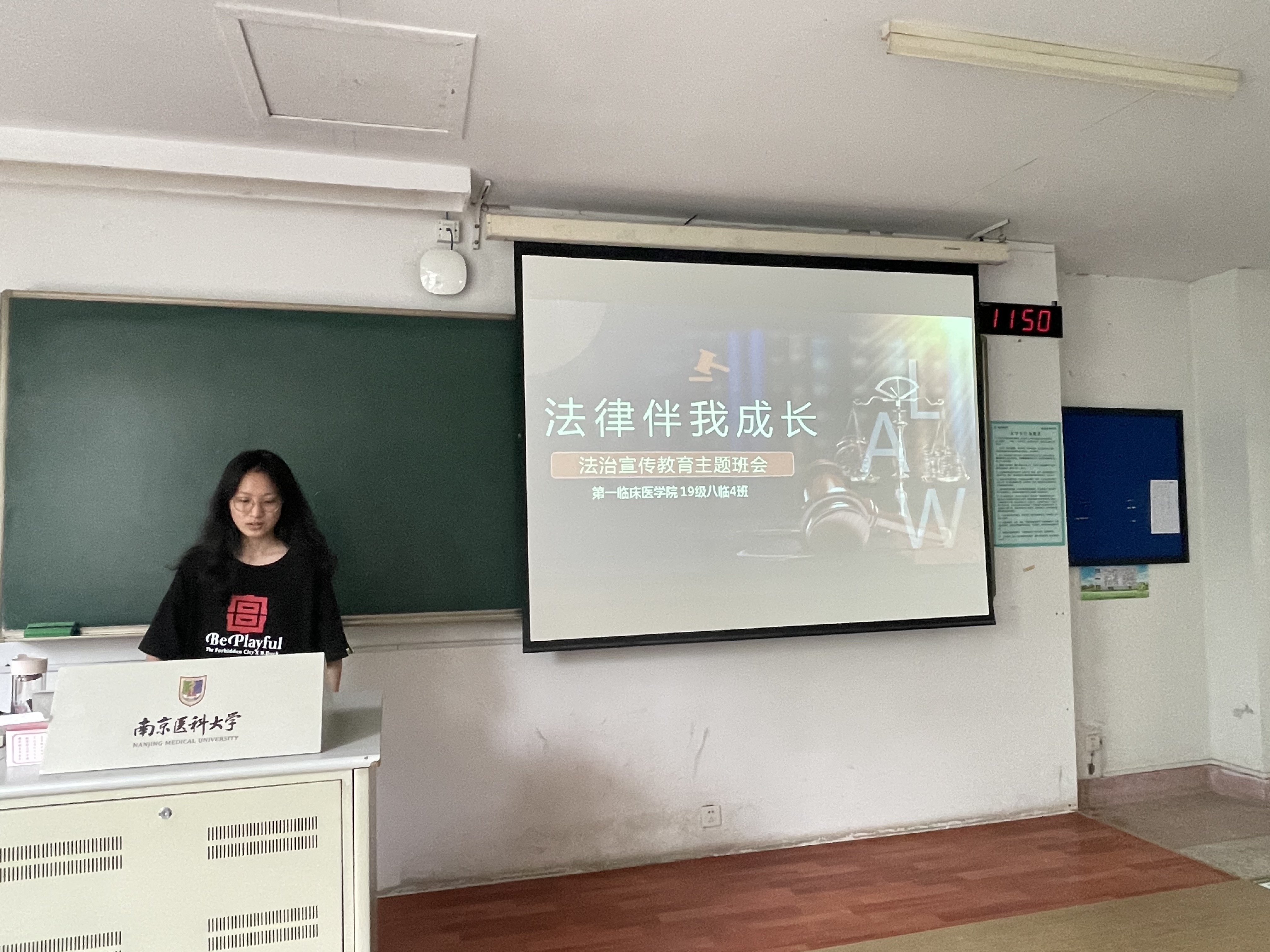 5月14日,2019级临床(5+3)一体化4班召开了以“法律伴我成长”为主题的法治宣传教育主题线下班会。