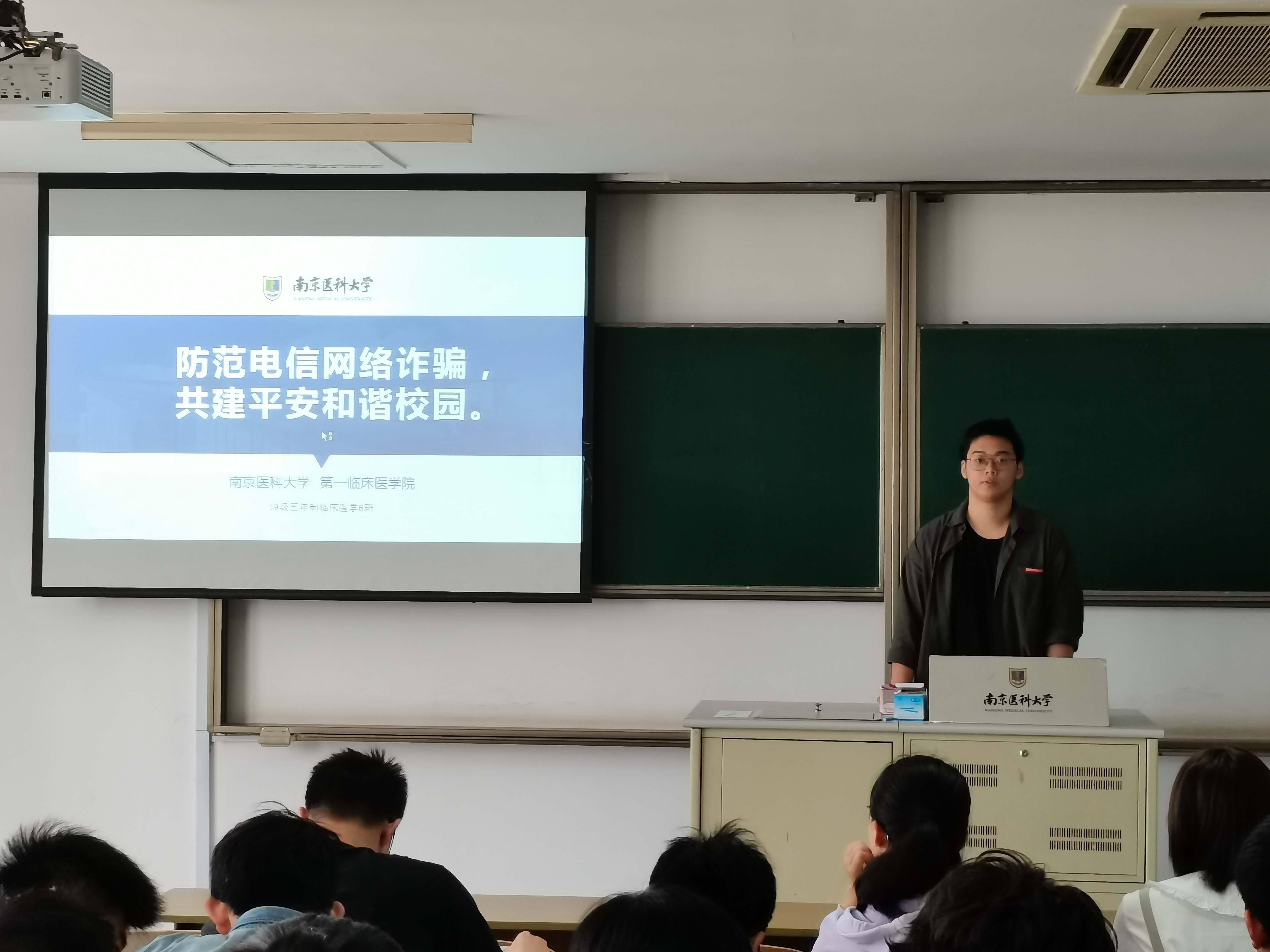 5月13日上午,2019级五年制临床6班在明达楼213教室举行了“感谢有你,保驾护航”主题班会暨防范电信网络诈骗宣传教育讲座,全体同学参与此次活动。