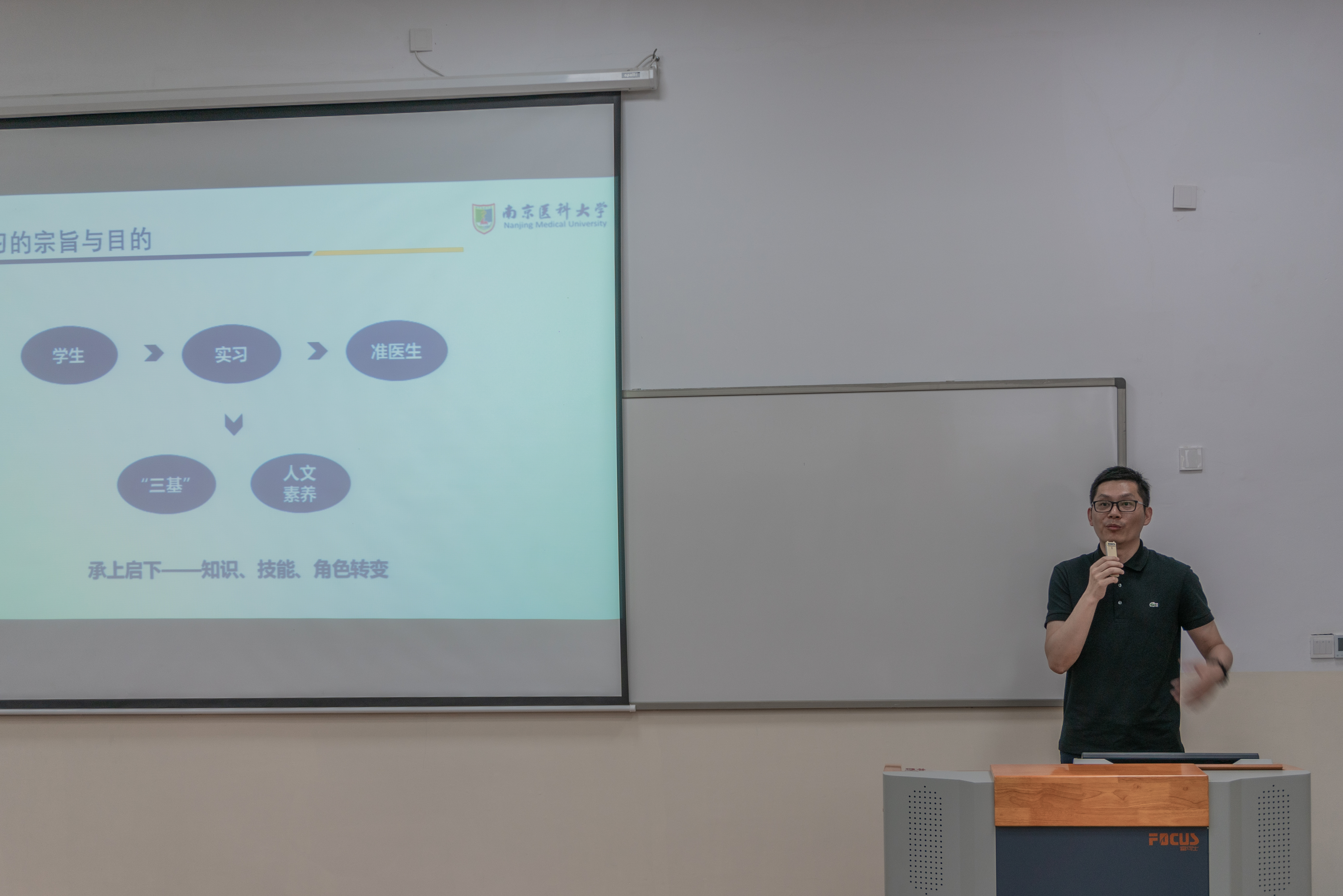 会上,孙茂才老师介绍了实习整体安排,详细阐明了实习的目的和宗旨、实习的内容和计划、实习管理流程、考试考核以及管理纪律等。孙老师强调,在实习期间要自觉遵守学校和医院的纪律,紧扣实习大纲完成相应任务,提高自主学习能力、树立终身学习观念。随后,刘继永副处长希望同学们能够珍惜和利用好学校和实习医院提供的平台,在实践中学习和巩固理论知识,不断训练临床技能、锻炼诊疗思维、提升沟通能力、培养人文情怀。最后,辅导员王榆老师公布了实习分点结果,布置了换点工作安排。