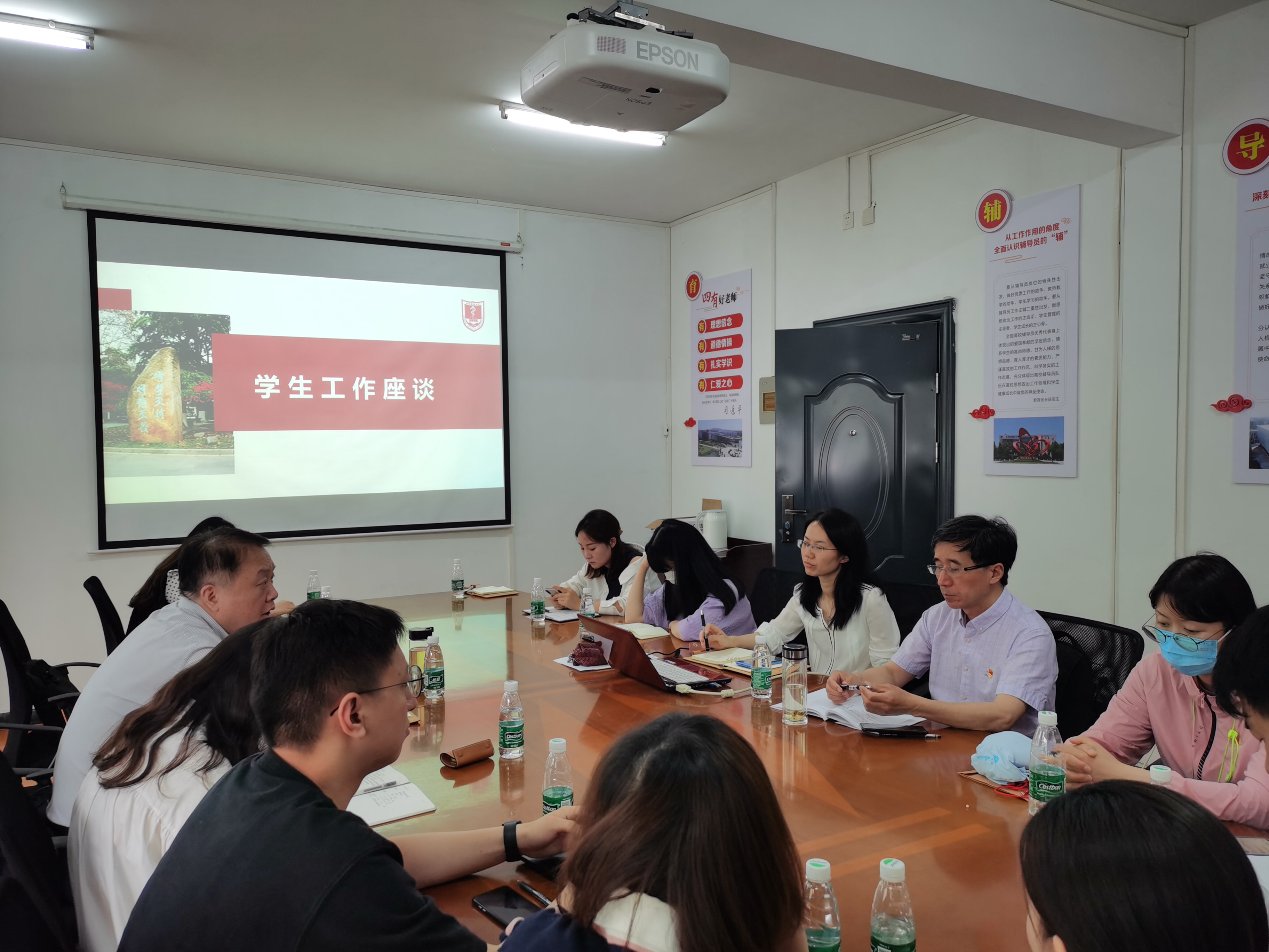 谈会上,我院各年级学生工作办公室逐一汇报本学期各项工作进展和下一阶段的工作计划。常务副书记苏荣健就见习下点、实习换点和见实习点党团建设工作,低年级双创工作,暑期社会实践,以及学生党史学习教育梳理等共性的工作与与会辅导员老师进行交流。