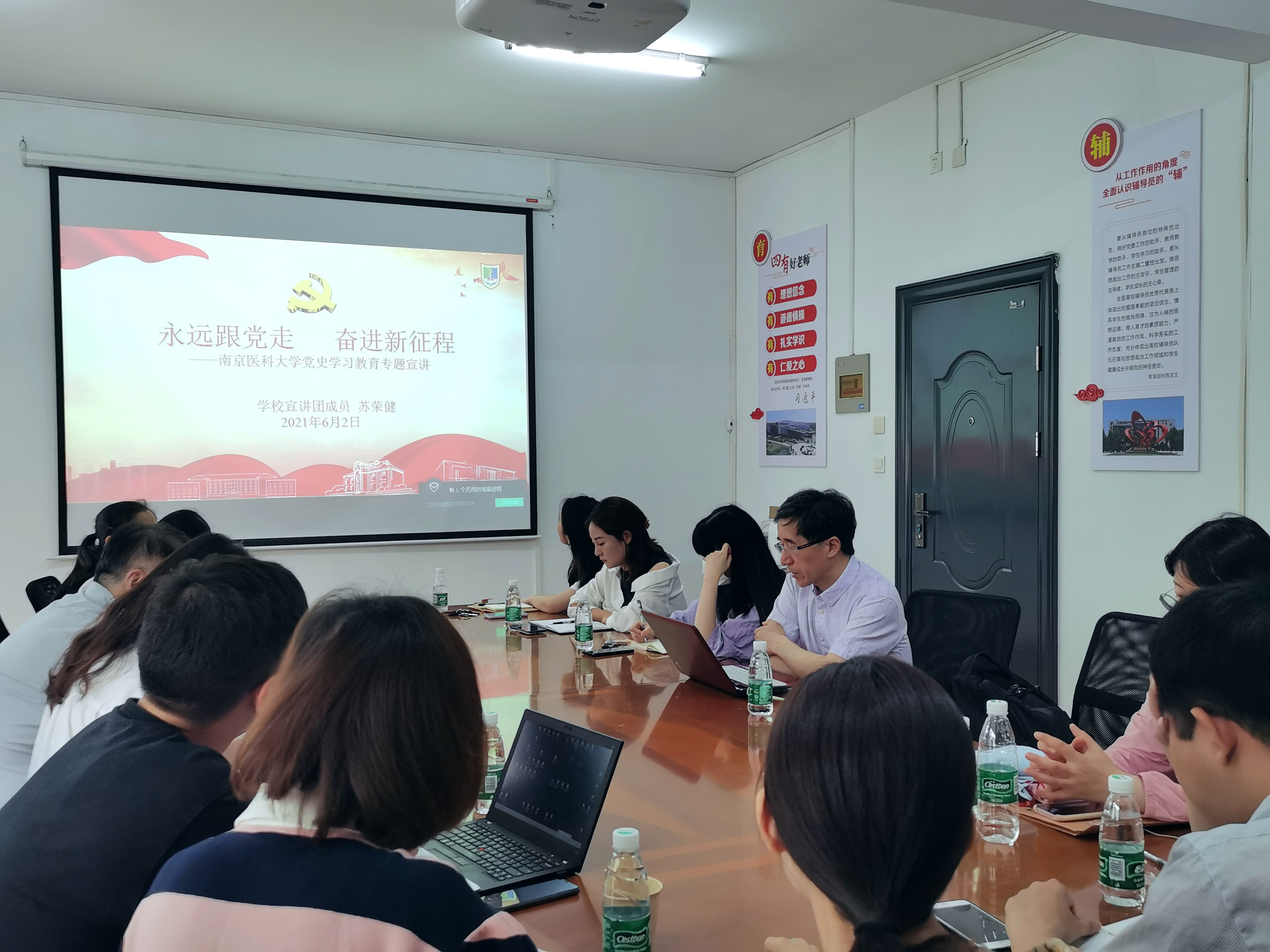 6月2日,第一临床医学院召开辅导员党史学习教育宣讲会,我院党委常务副书记苏荣健,党委副书记、副院长管园园及学生工作办公室全体辅导员老师参加本次宣讲会。