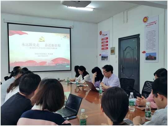 苏书记要求学院辅导员老师进行党史学习时,要真学、笃学,要学在日常、学在实处,要用活用好江苏丰富的党史资源和南医大红色校史资源,还要在日常工作中善于用党的伟大成就激励学生,用党的优良传统教育学生,用党的成功经验启迪学生,要坚持“学党史,悟思想,办实事,开新局”的目标要求,结合学院学生工作实际情况,发挥自身优势,以优异的成绩向建党一百周年献礼。