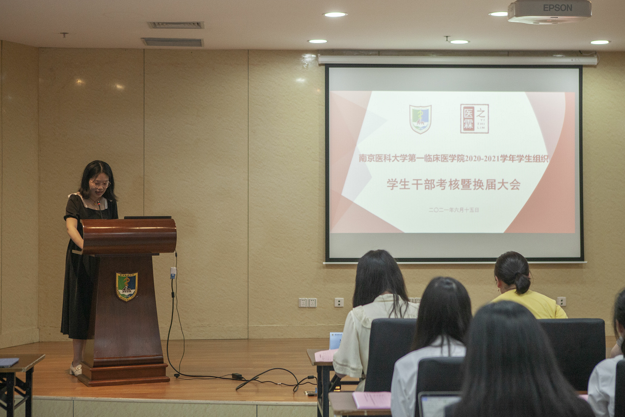 6月15日晚6:00,第一临床医学院在图书馆五楼报告厅召开团学组织学干考核与换届竞选大会。参加本次活动并担当评委的辅导员老师有叶馨、梁瀚元、孟志娟、陈琪波、张婷婷、郑训迪,以及部分学生代表。