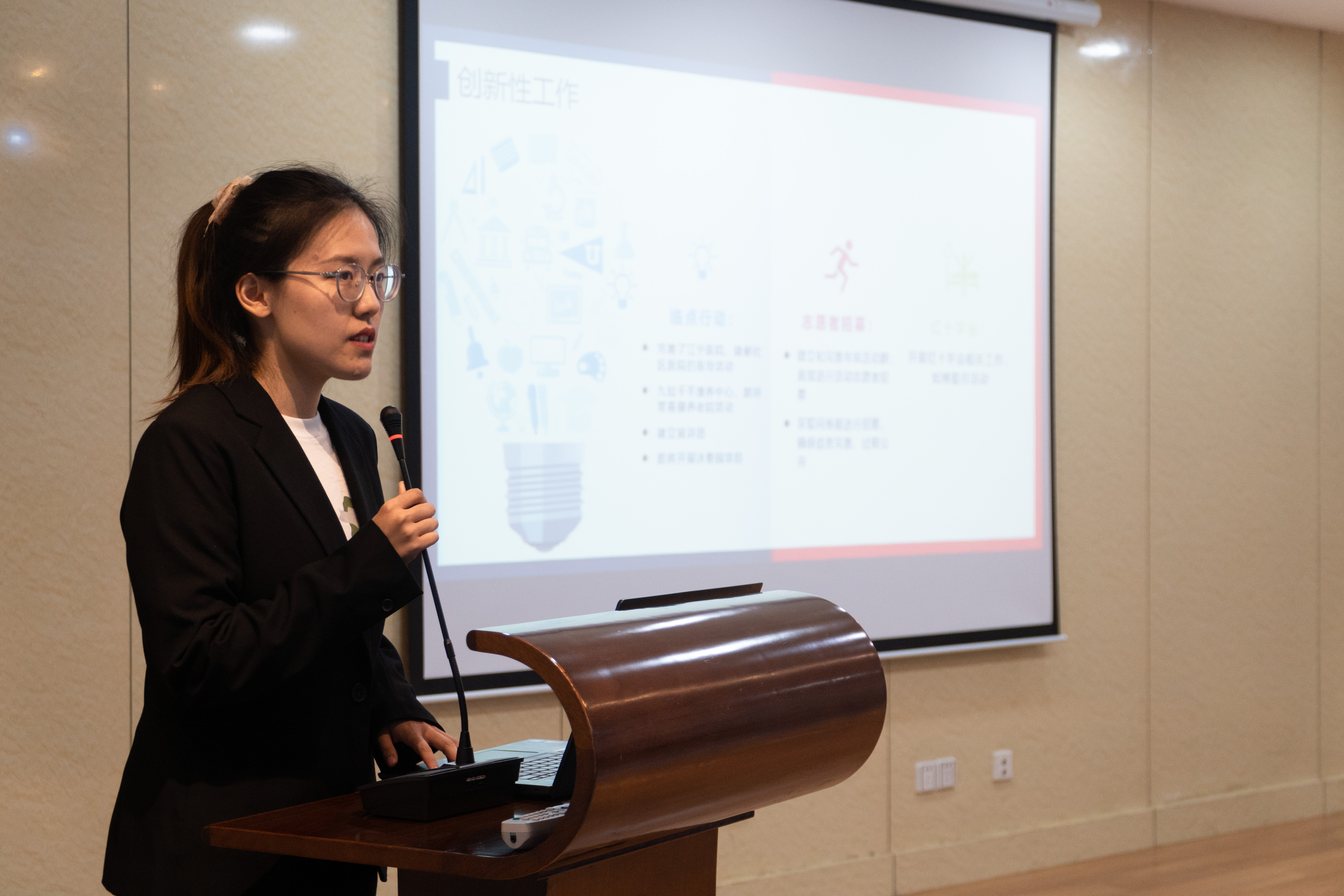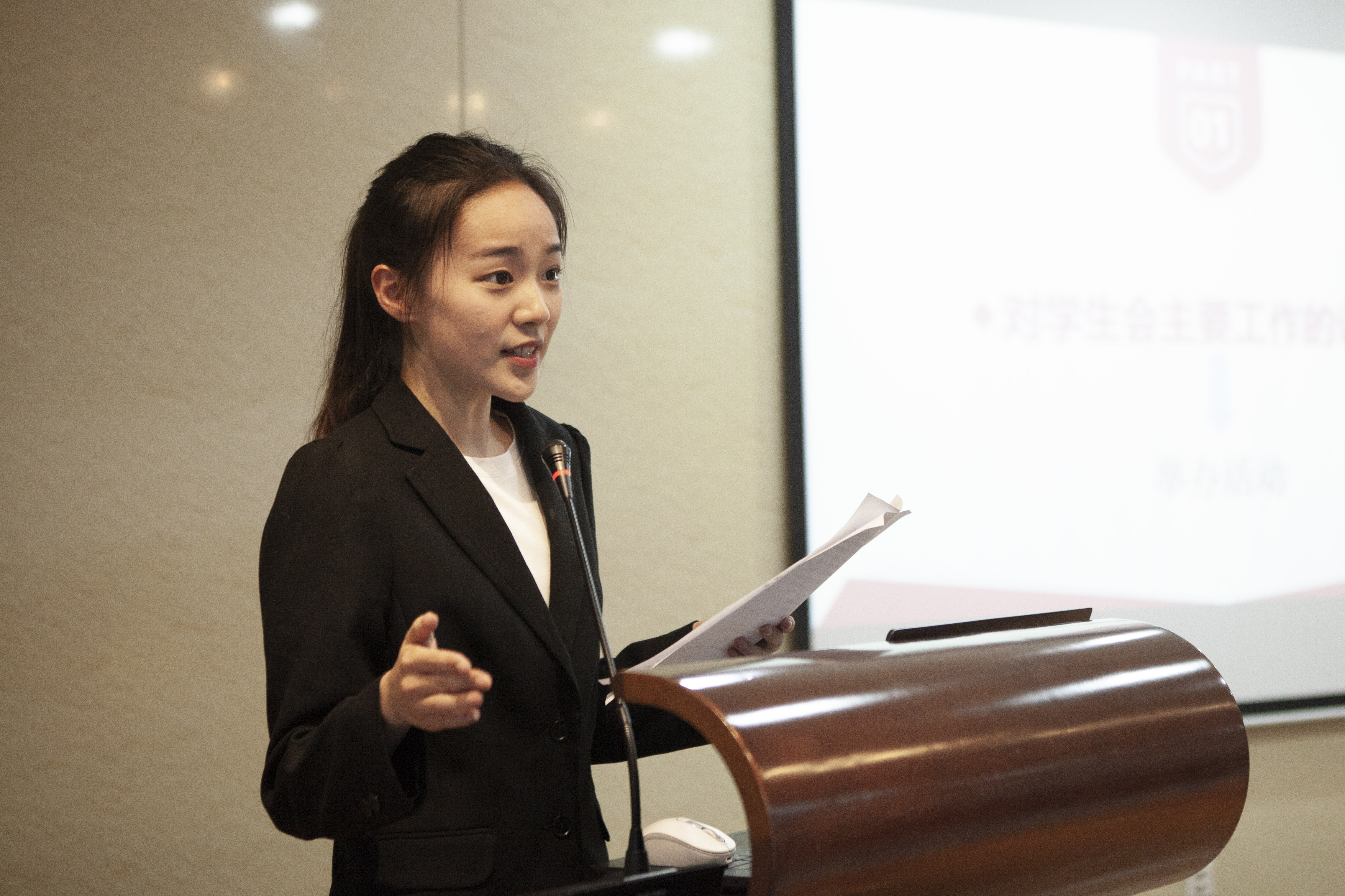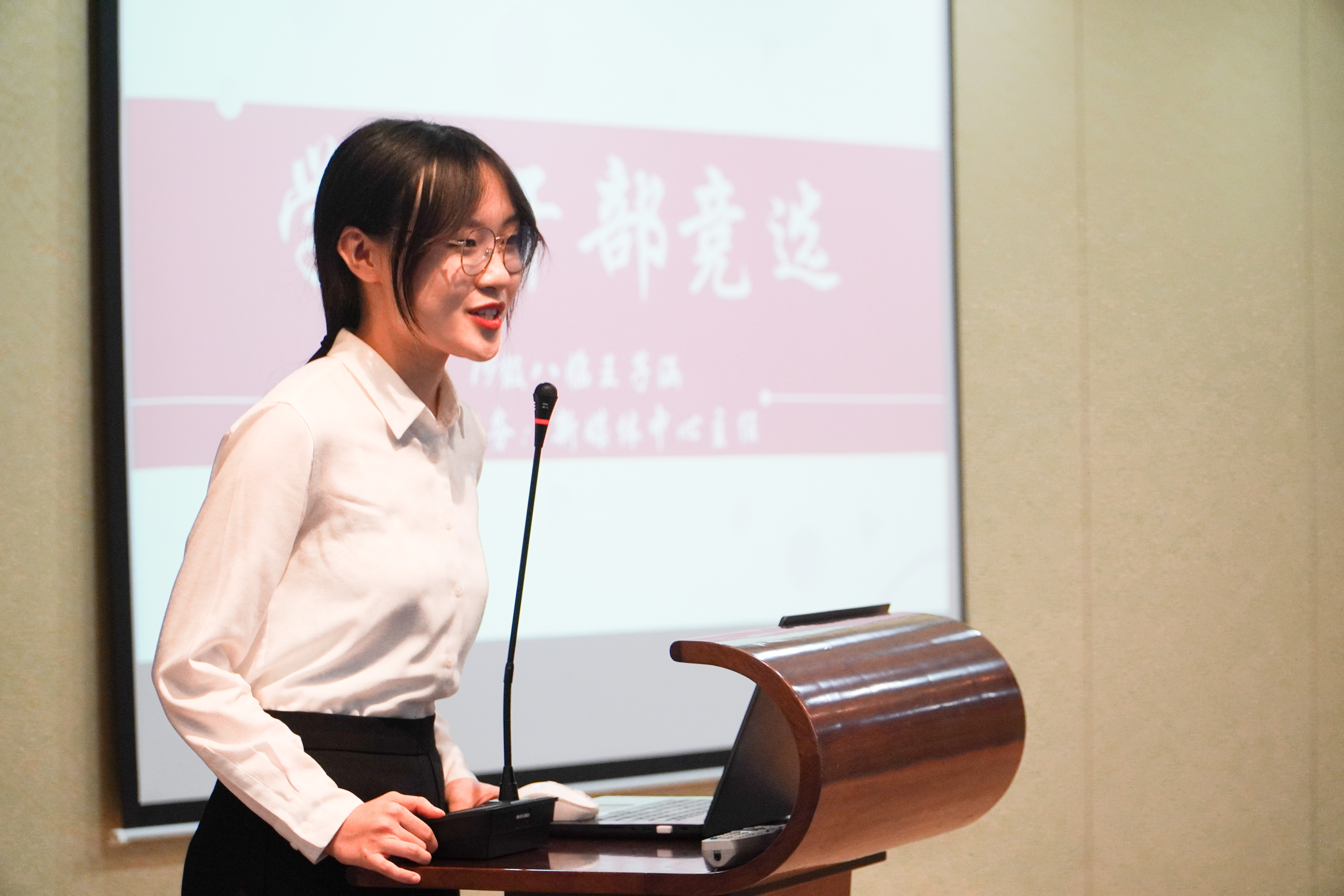 首先进行的是主要学生干部考核,分团委、学生会、新媒体中心主席团成员依次上台述职汇报。从工作内容、工作质量、工作感想与展望等方面对2020-2021学年工作进行了总结回顾。随后,开展了主要学生干部竞选,各候选人依次上台进行竞选演讲,评委老师和学生代表们根据候选人的日常工作表现和现场竞选演讲、工作规划等进行综合评判并投票,推荐产生新一届主要学生干部。