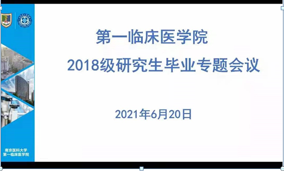 6月20日,第一临床医学院召开研究生毕业专题视频会议,学院领导陈明龙、苏荣健、王晓伟,辅导员老师刘中领、赵瑞雪以及全体2018级毕业研究生参会,学院党委常务副书记苏荣健主持会议。