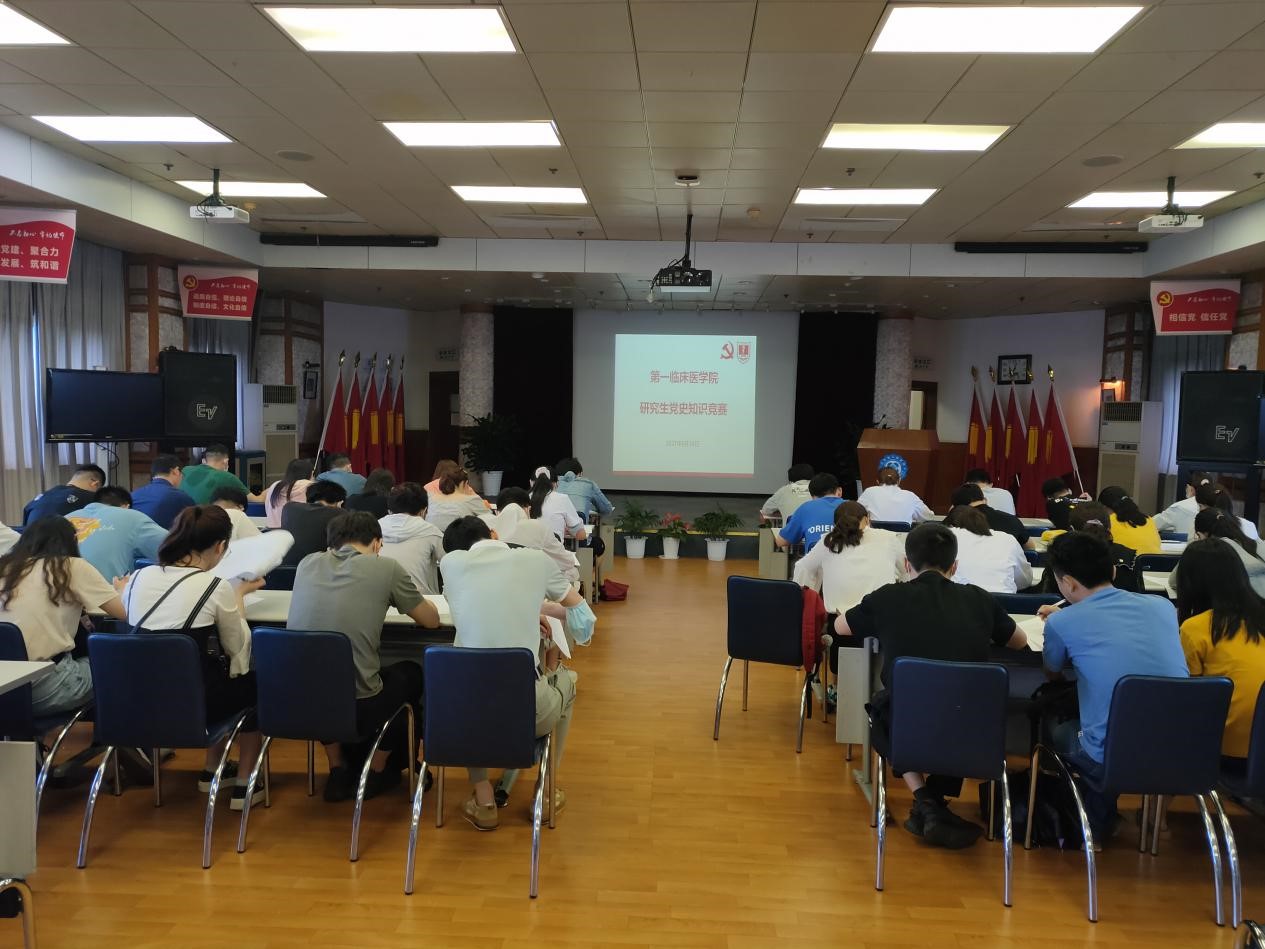 6月18日,第一临床医学院举行研究生党史知识竞赛活动,二十五个党支部经过初选后派出代表参赛,比赛由刘中领老师主持。