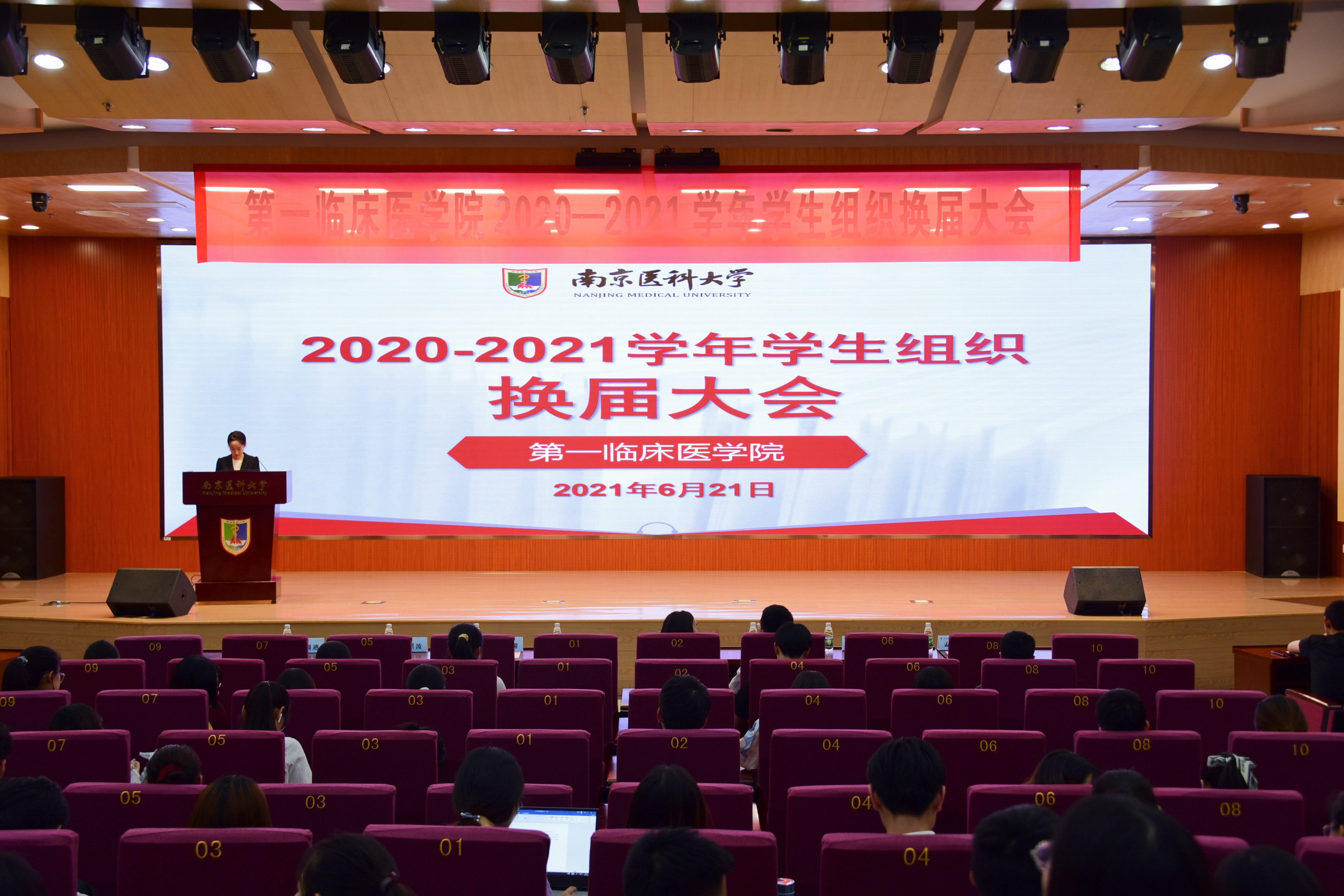 2021年6月21日,南京医科大学第一临床医学院在至诚楼三楼报告厅举行了2020—2021学年学生组织换届大会,出席本次大会的有第一临床医学院党委副书记、副院长管园园老师,学院江宁学工办全体老师以及院学生组织新老成员。院学生会执行主席阚苏童主持本次会议。