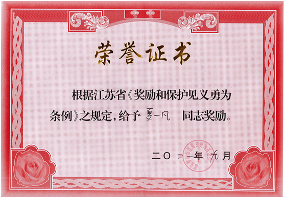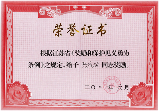 我院2017级5+3临床医学专业张流超、夏一凡两位实习同学,商场内协助警方成功救治了一名摔倒致双腿骨折的精神病患者,9月被南京市秦淮区见义勇为基金会认定为“见义勇为”行为并获奖励。