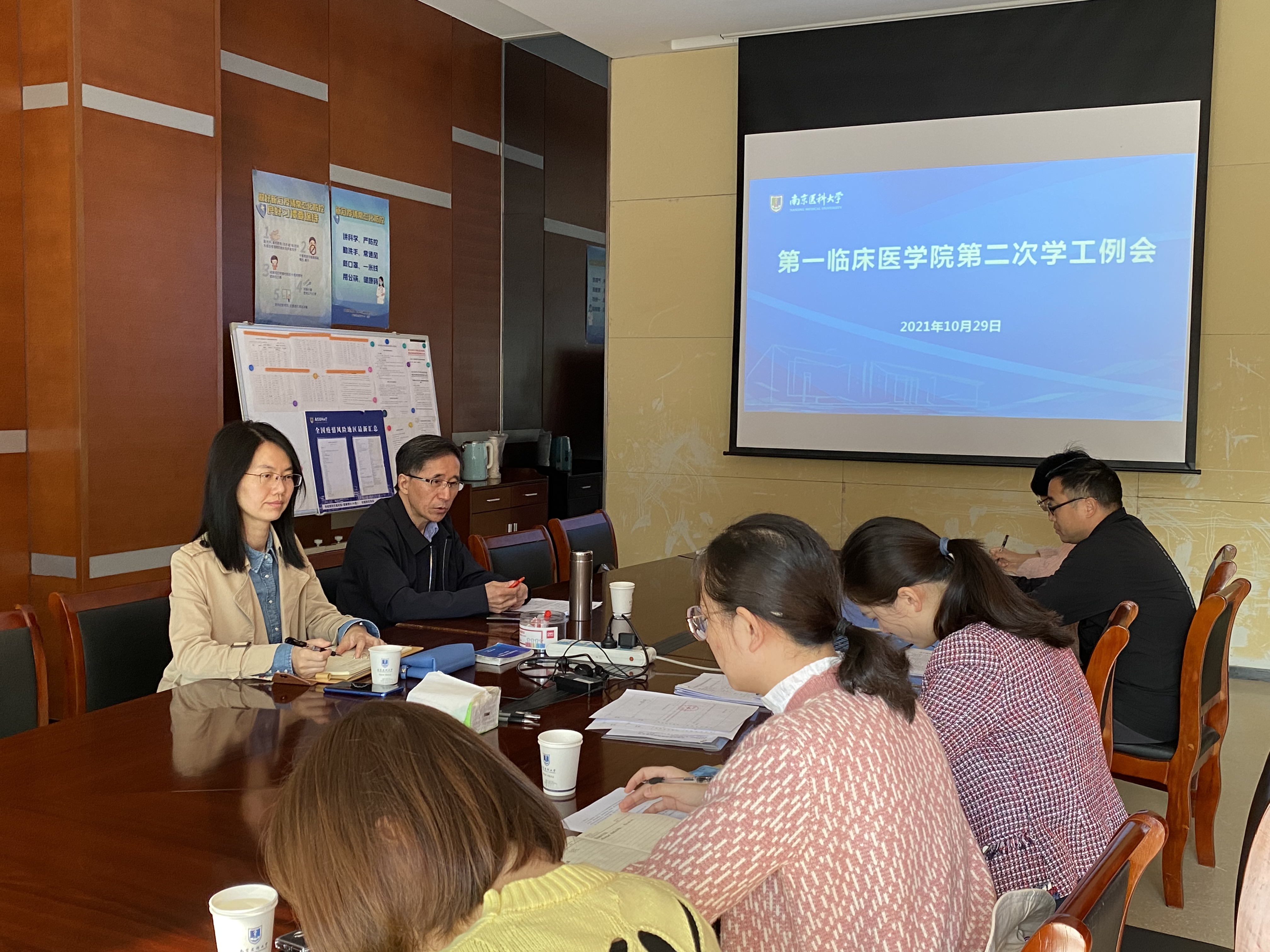 10月29日上午,第一临床医学院在江宁校区举行2021-2022学年第一学期第二次学生工作会议,学院党委常务副书记苏荣健,党委副书记、副院长管园园及学生工作办公室全体老师参加会议。