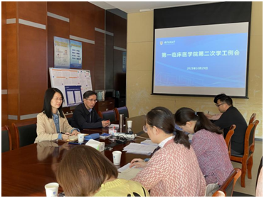 10月29日上午,第一临床医学院在江宁校区举行2021-2022学年第一学期第二次学生工作会议,学院党委常务副书记苏荣健,党委副书记、副院长管园园及学生工作办公室全体老师参加会议。