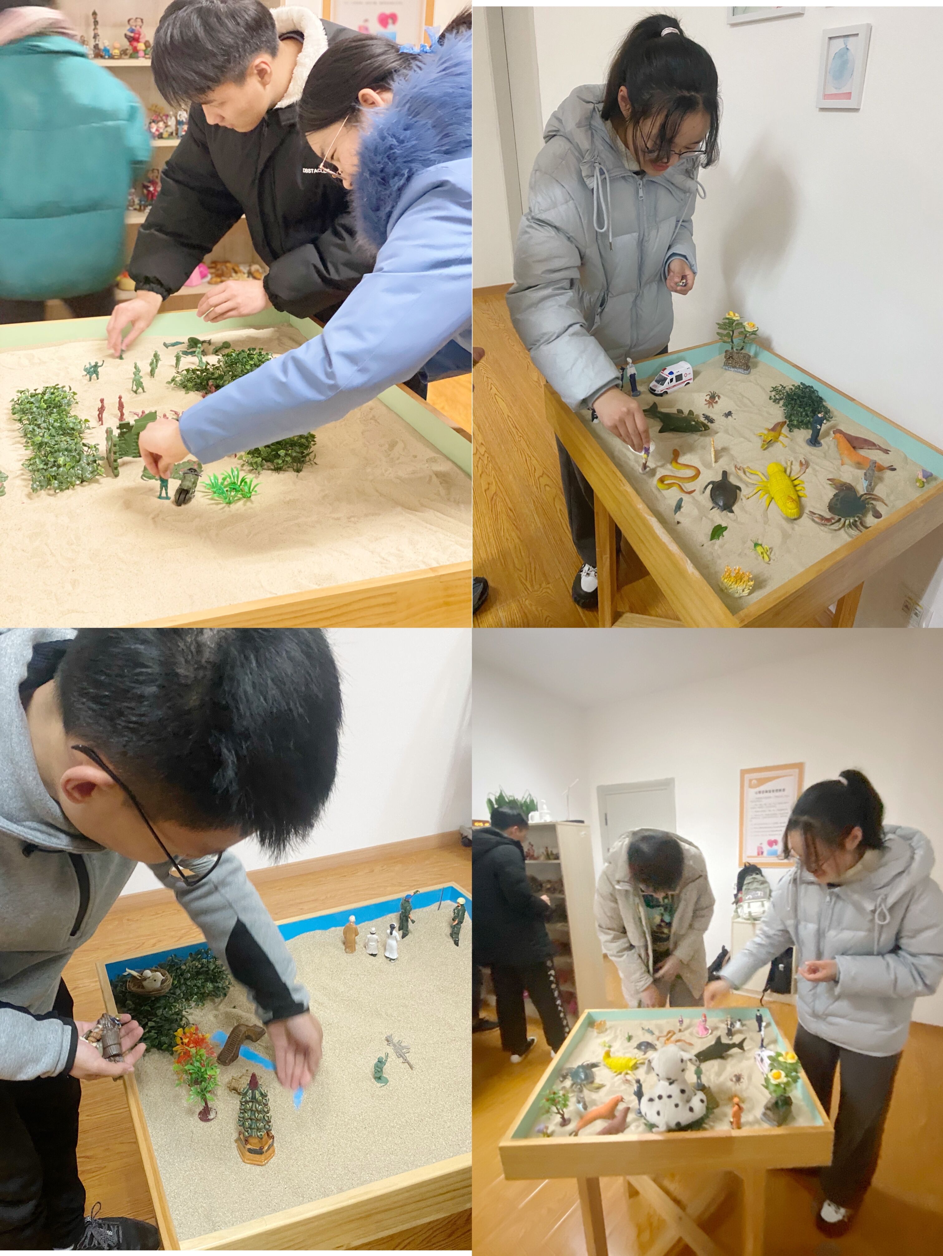 团体沙盘活动不仅可以促进人际关系互动,同时也能体现不同个体的感受、思维和价值观等。通过沙盘游戏,同学们也能更好理解自己的角色和社会责任,促进同学们身心健康。