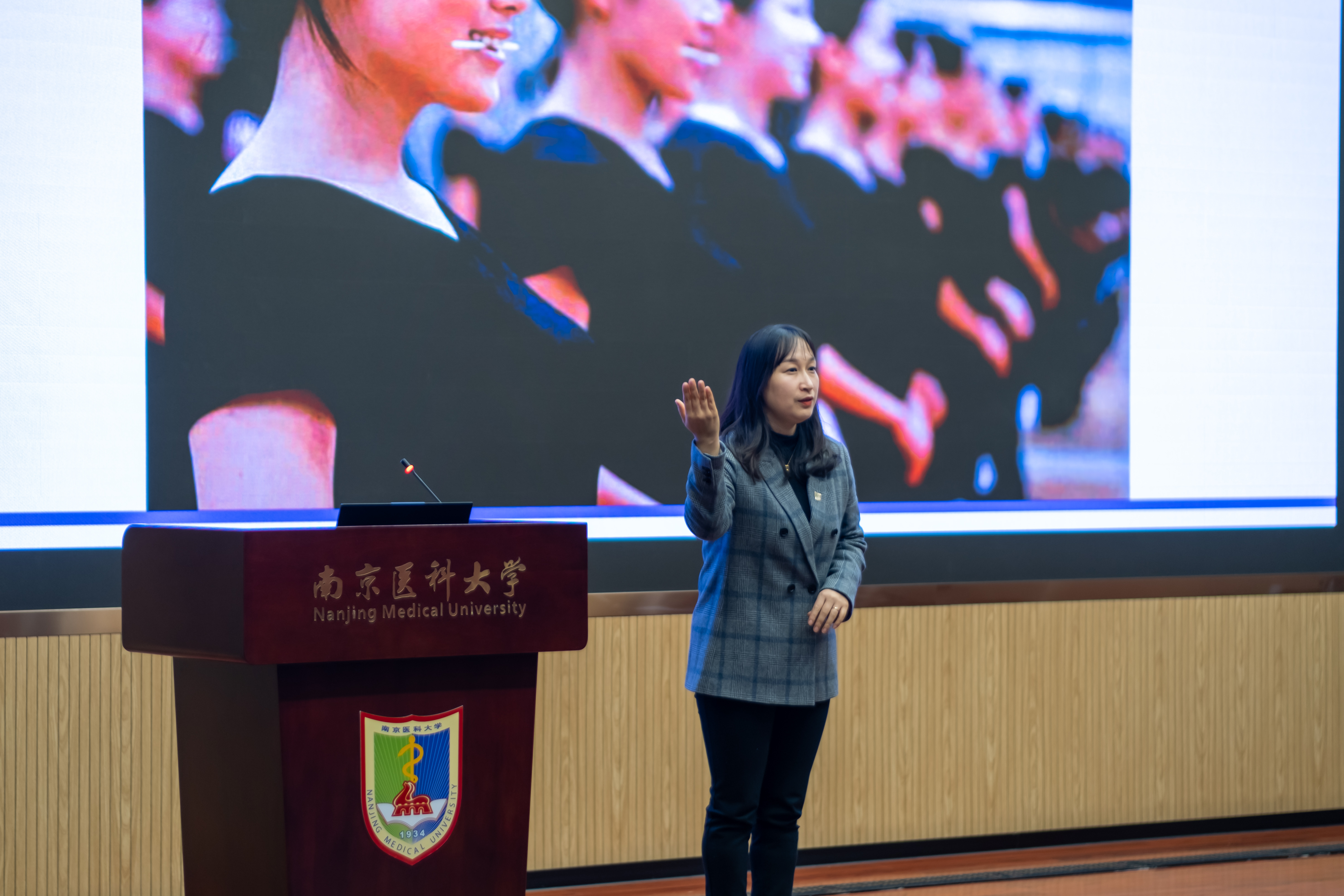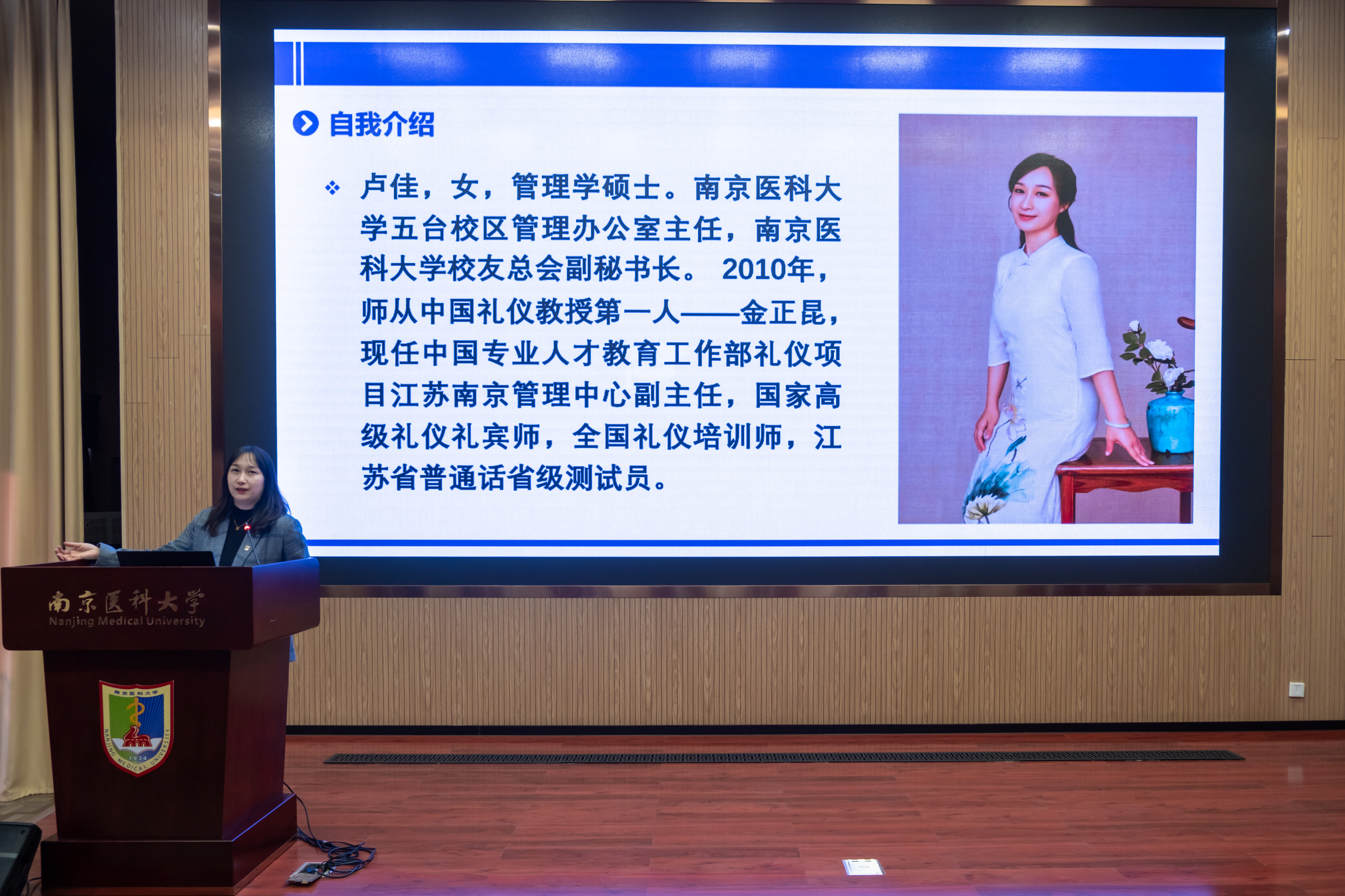 演讲伊始,卢佳老师以“知礼,懂礼,学礼以立”入题,并借由校园中的实例说明了礼仪对于完善个人形象、提高个人的心理素质等方面的作用,告知同学们学习礼仪的必要性。随后,她从仪容仪表、姿态要求、服饰要点、举止表情等方面为大家讲解形象塑造的具体办法,通过正反案例的结合使同学们对良好礼仪有了更深刻的理解。最后,卢佳老师总结并强调南京医科大学学生行为规范“十要十不要”,祝福同学们“在南医,遇见更好的自己”。