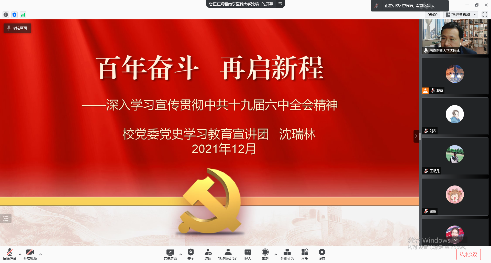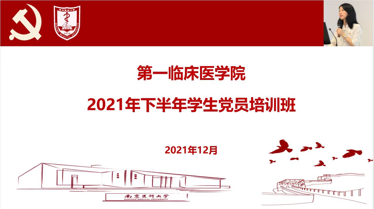 12月13日、15日晚,第一临床医学院线上举办2021年下半年学生党员培训班,邀请校党委党史学习教育宣讲团成员校党委常委、宣传部部长沈瑞林,组织部常务副部长王兴东,院党委常务副书记苏荣健和全国优秀党员、一附院服务保障中心主任王永红作专题报告。第一临床医学院全体学生党员参加,培训由学院党委常务副书记苏荣健和副书记、副院长管园园主持。