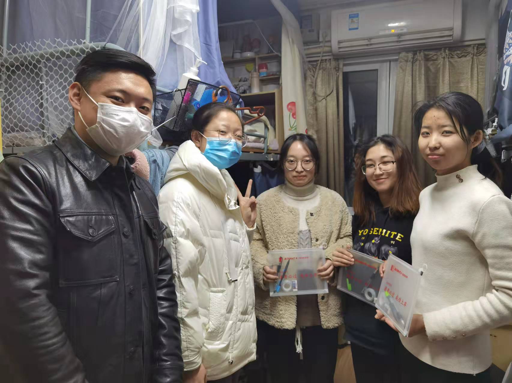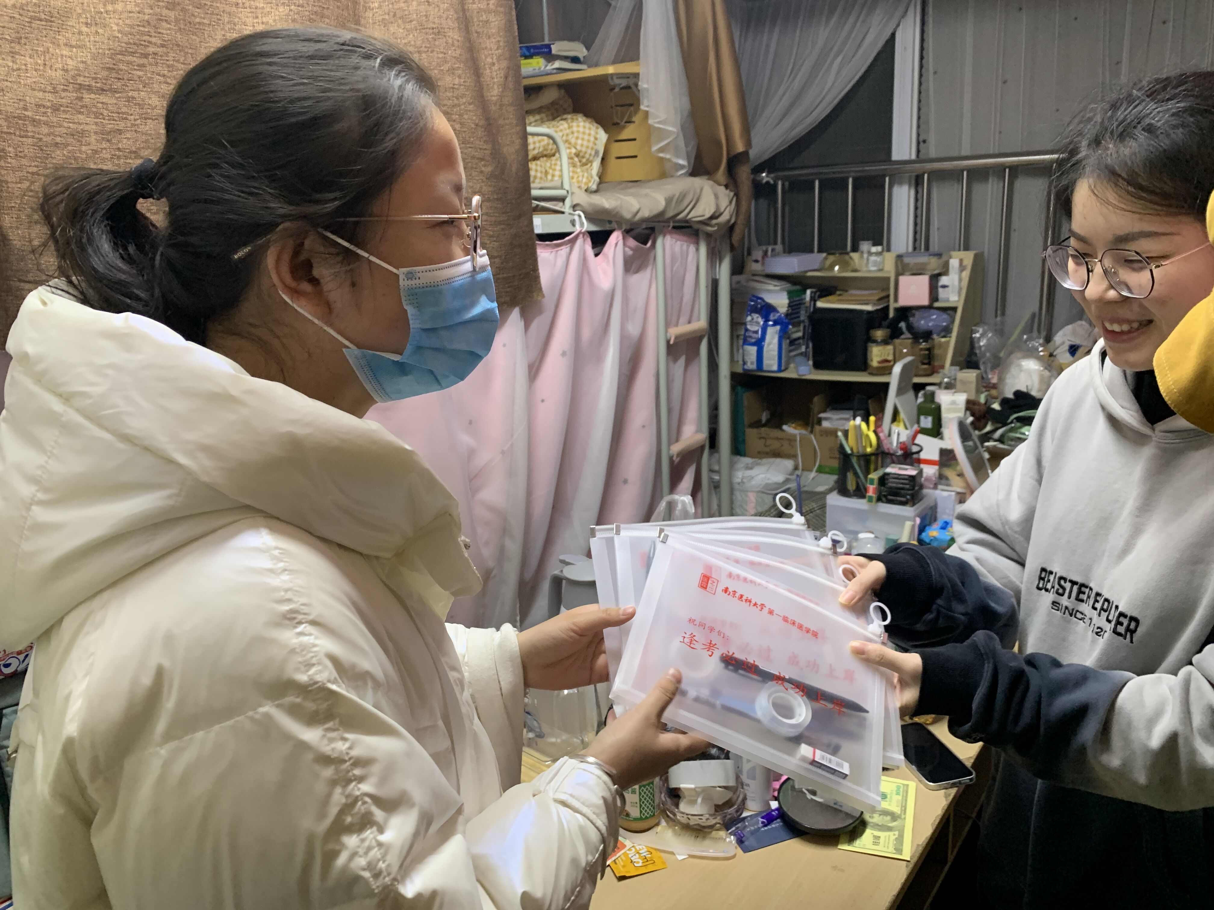 随着年关将近,2022年全国硕士研究生招生考试与省市统考在即,18级医检班的同学即将踏上考研或就业的战场,为帮助同学们在考前缓解焦虑,同时给予祝福与关心,第一临床医学院2018级学生工作办辅导员陈琪波老师、栾超老师于2021年12月20日前往18级医学检验班宿舍开展考前慰问活动。