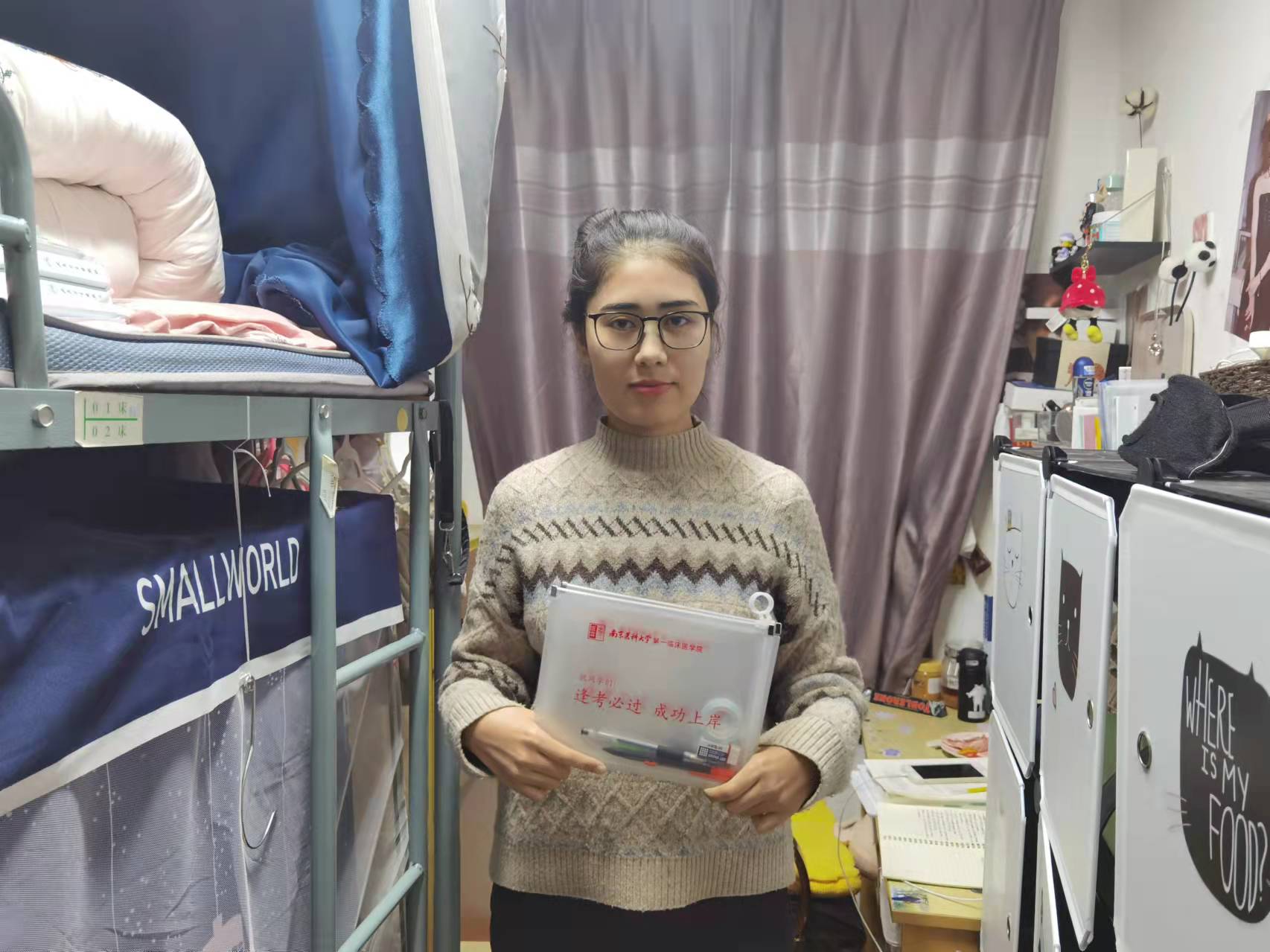 随后,辅导员老师将学工办精心定制的文具礼包赠与各位同学,同时为同学们加油鼓劲,鼓励同学们时刻保持乐观积极的心态来迎接即将到来的考试。临别之际,两位老师再次预祝同学们取得理想的成绩,成功上岸!