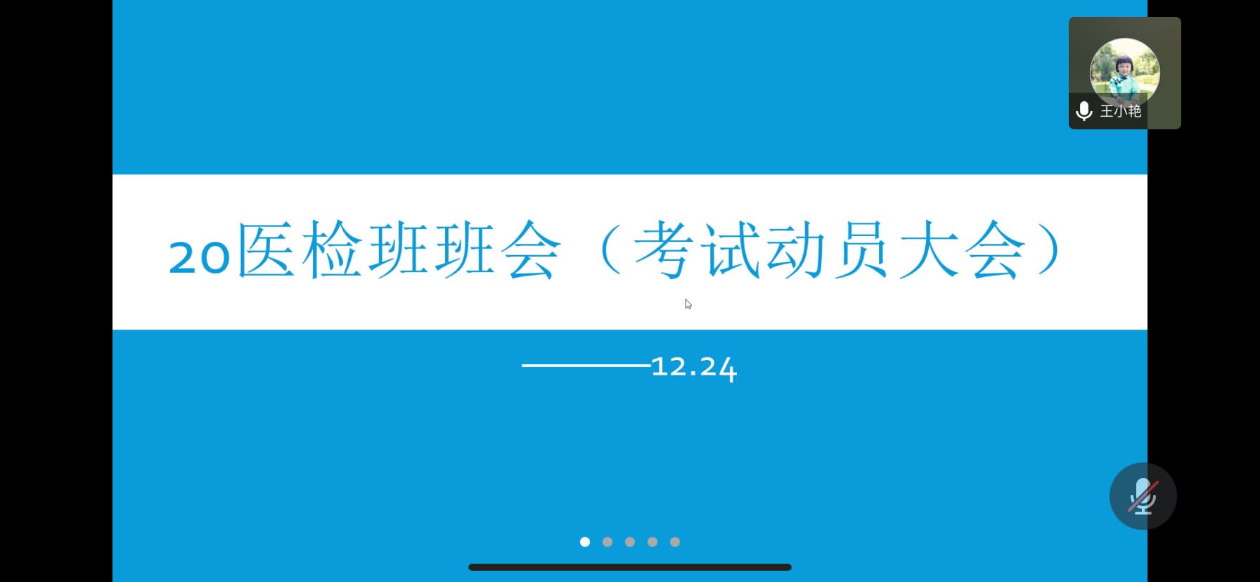 2021年12月24日,第一临床医学院2020级医学检验技术班通过腾讯会议平台召开考前动员班会。新任兼职班主任王小艳老师及班级全体同学参会,班长鲁佩辰同学担任主持人。