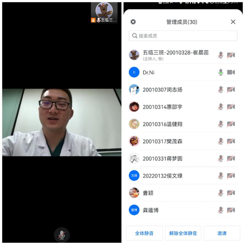 12月23日晚,2020级临床医学3班全体同学在腾讯会议平台进行以调整心态、科学备考为主题的考前动员班会暨兼职班主任交流会,本次活动由班长邵嘉锘、团支书崔晨蕊同学主持。