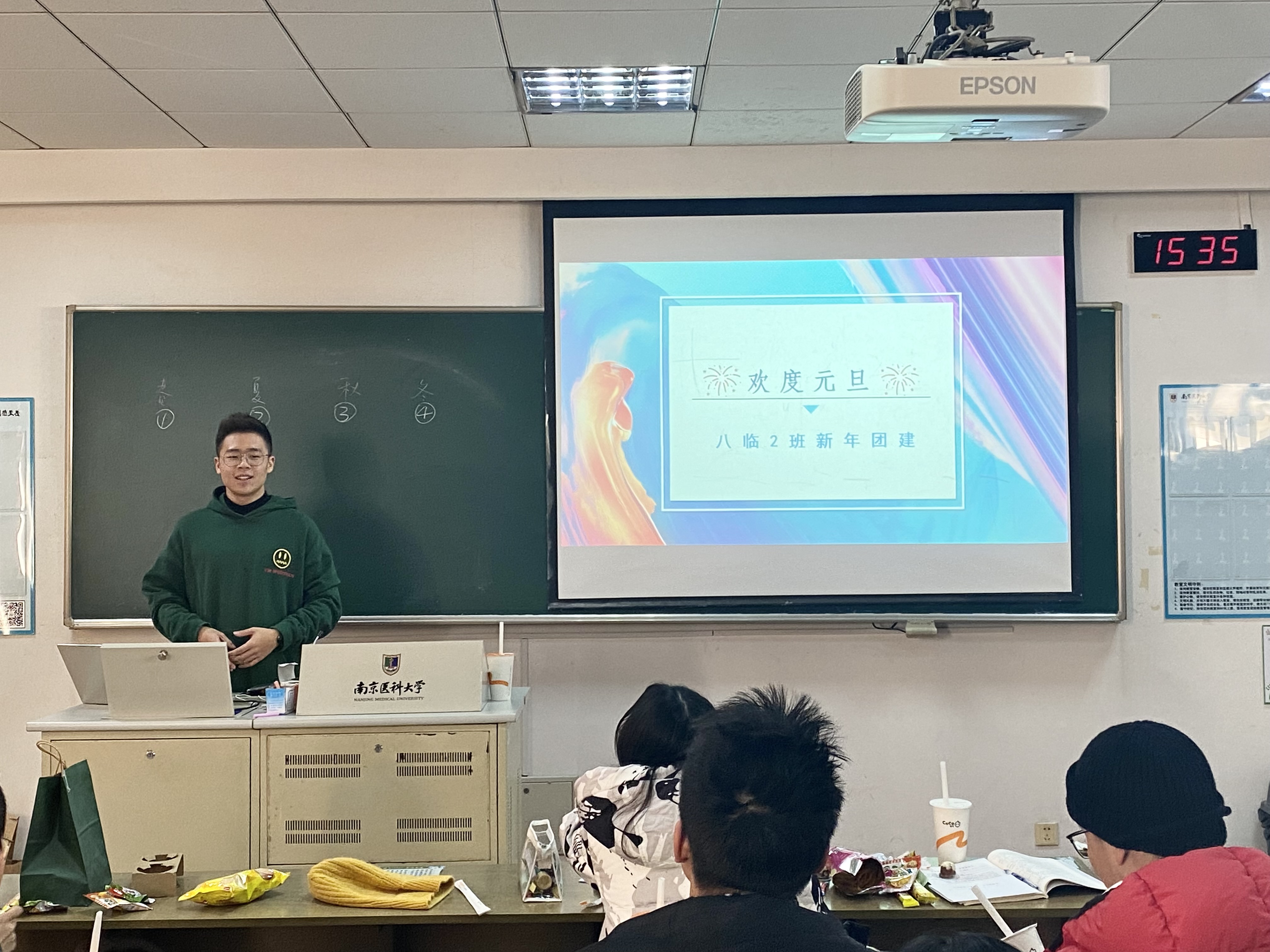 12月30日下午,20级临床医学(5+3一体化)2班全体同学在博学楼A408教室举行了以“欢度元旦”为主题的班级团建活动。班长唐璟琦同学担任主持人。
