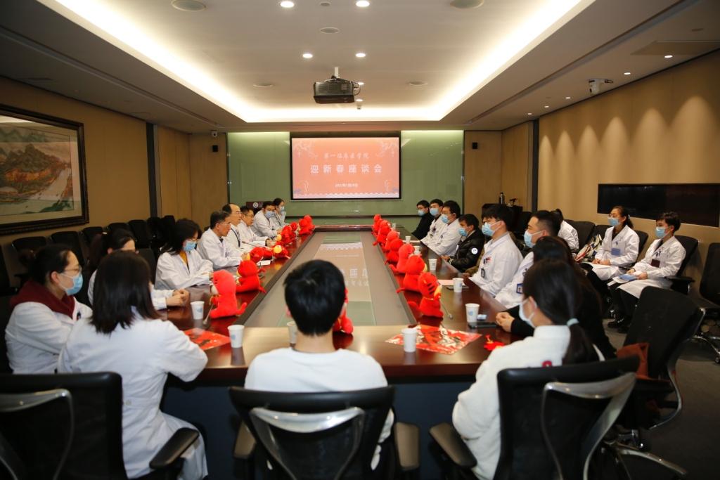 苏荣健常务副书记向与会代表,并通过他们向在新春佳节仍然坚守岗位的近500位研究生、实习生表示敬意,致以新春问候。他关切地询问留院学生学习、生活情况,希望同学们常怀感恩之心,常与家人保持联系,送上“云端”祝福;做好假期学习、工作规划,不断提升完善自己;满怀新年新期望,砥砺奋进,共同携手向未来。