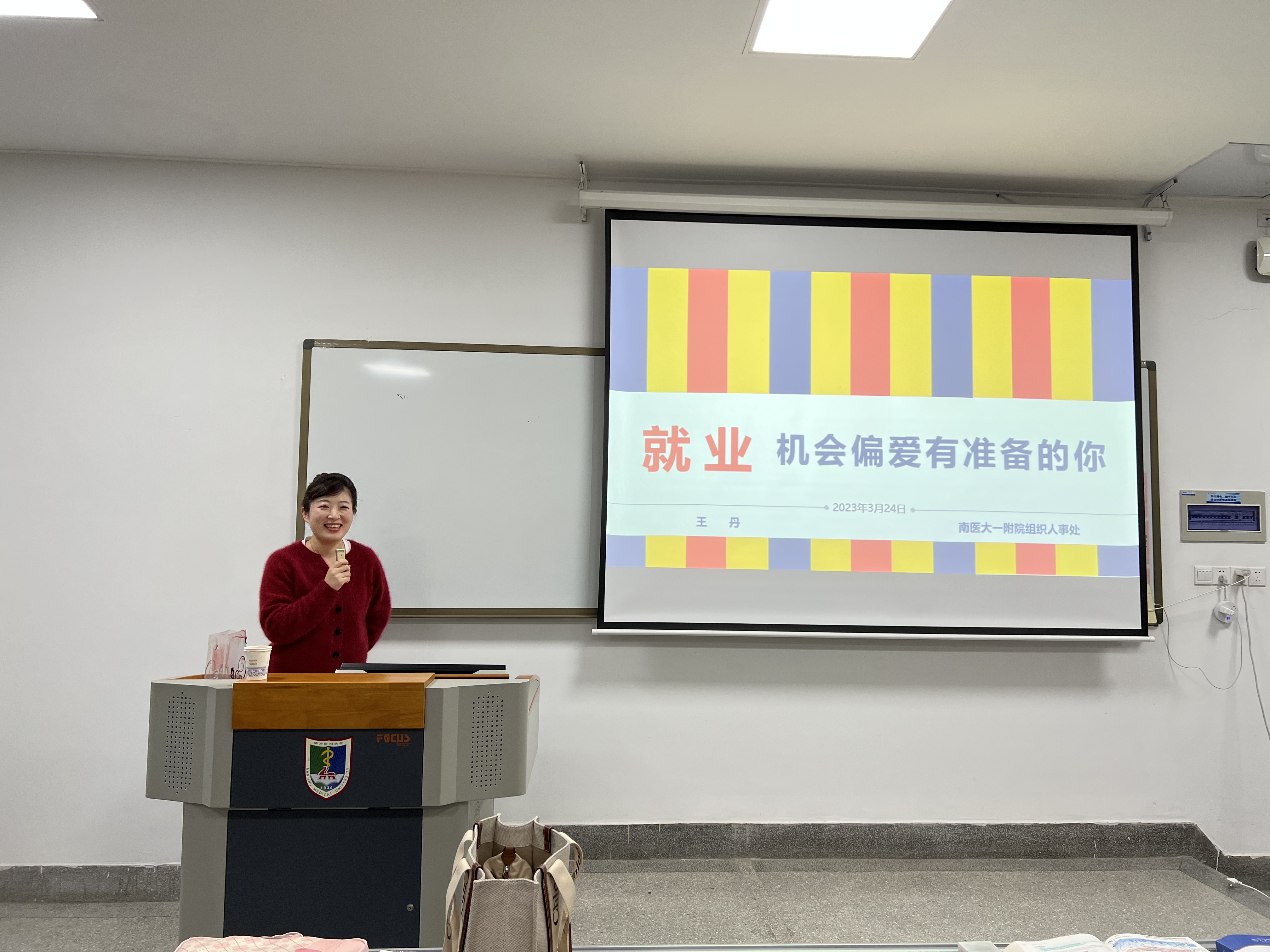 3月24日晚,应我院研究生学生工作办公室邀请,一附院组织人事处人才工作办公室副主任王丹在五台校区3号楼201以“机会偏爱有准备的你”为题,面向研究生开展就业指导专题讲座。