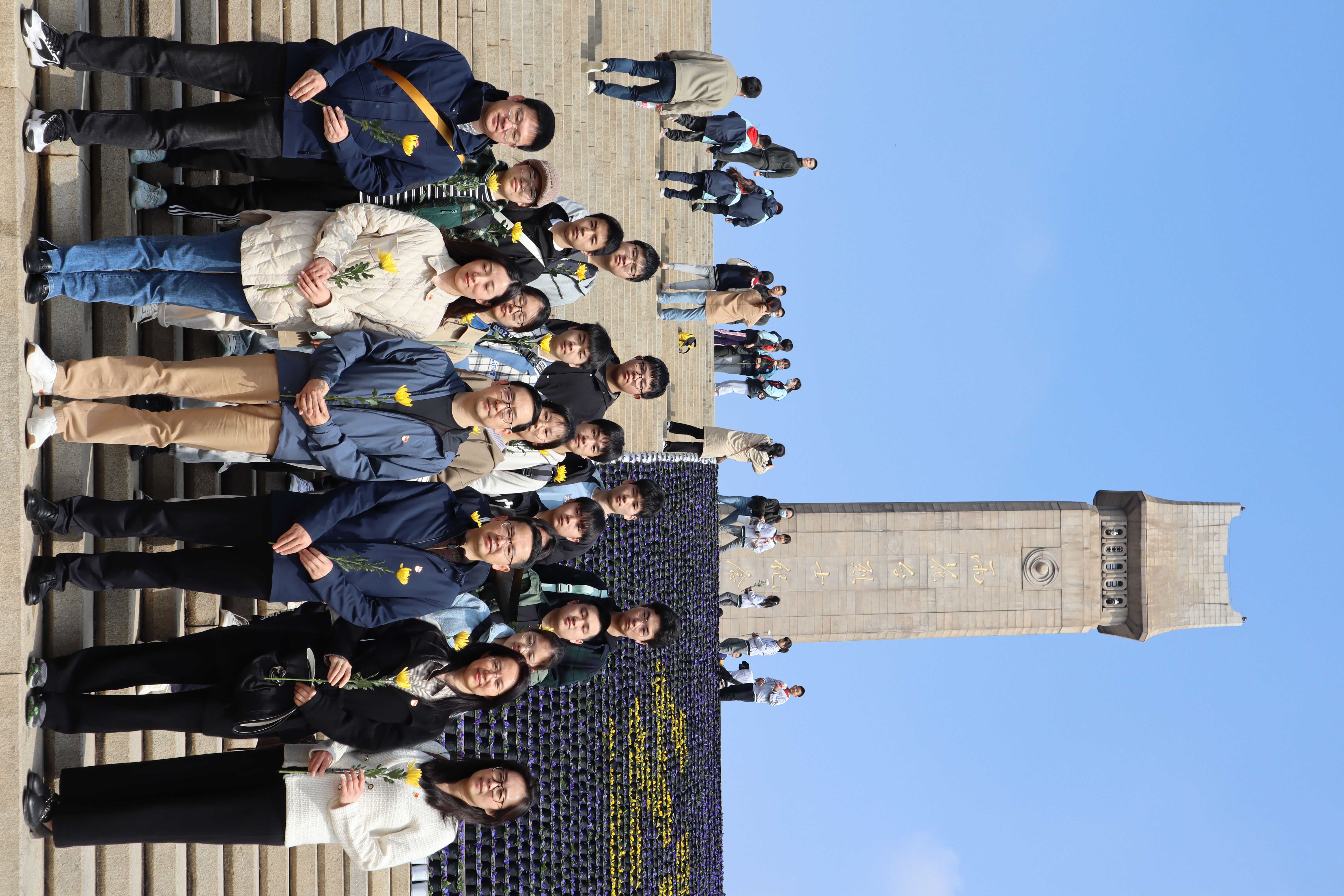 随后,全体师生来到了烈士纪念碑前,向为了革命事业视死如归、不怕牺牲的先烈们默哀致敬并献花。