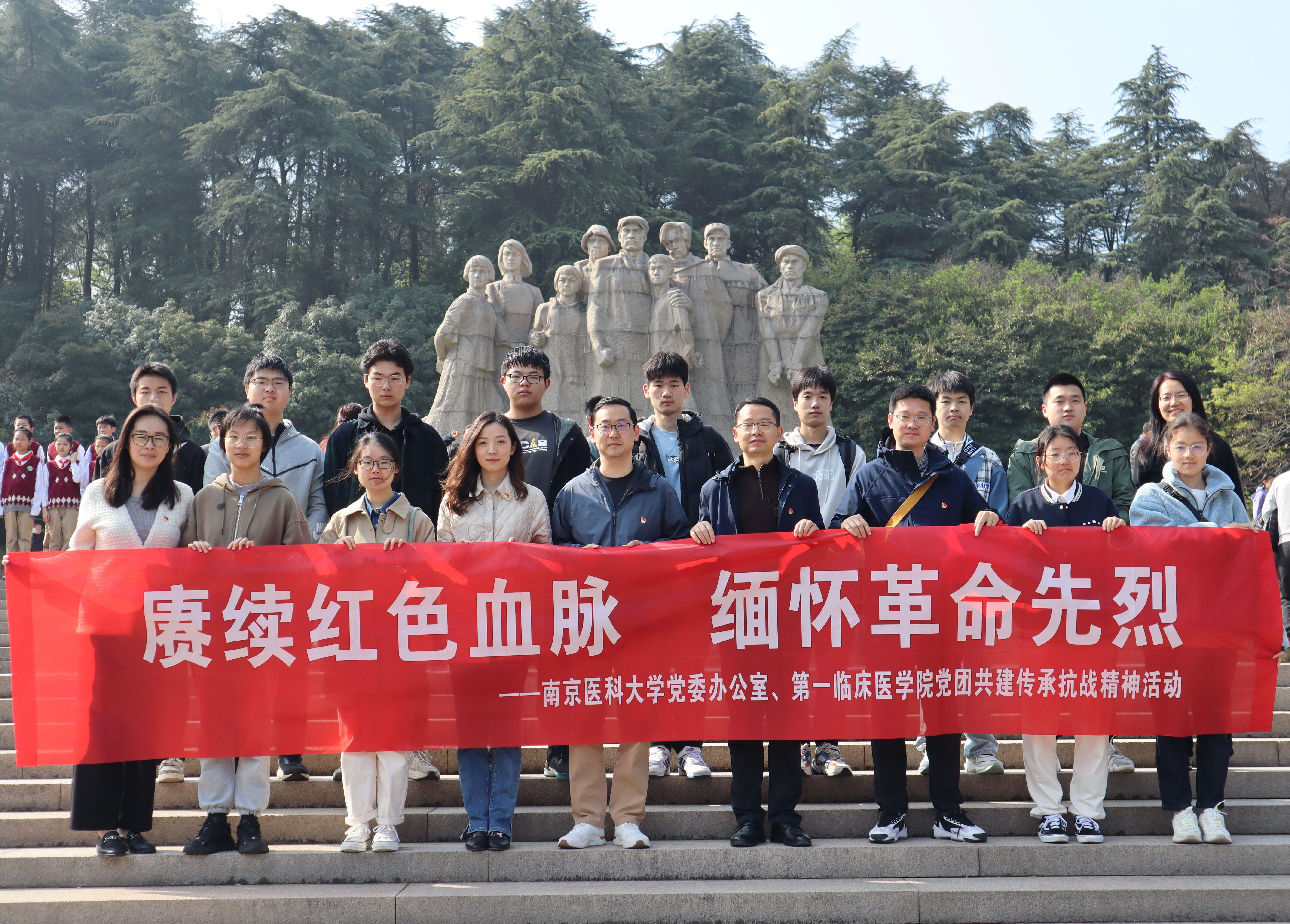 东风惆怅欲清明,英魂不朽铸新章。为了缅怀革命先烈,加强爱国主义教育,2023年4月1日上午9点,南京医科大学党委办公室党支部、第一临床医学院2022级天元班团支部前往雨花台烈士陵园开展缅怀革命先烈活动。党委办公室主任哈维超,副主任张爱林、刘莹,党委办公室全体老师,第一临床医学院副书记、副院长管园园,第一临床医学院2022级天元班团支部学生代表参加了此次活动。