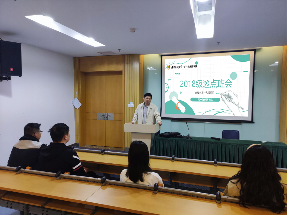 4月14日,第一临床医学院2018级辅导员栾超老师赴宿迁市第一人民医院巡点,开展心理健康教育主题班会。座谈会由实习组长主持,我院全体实习生参加。