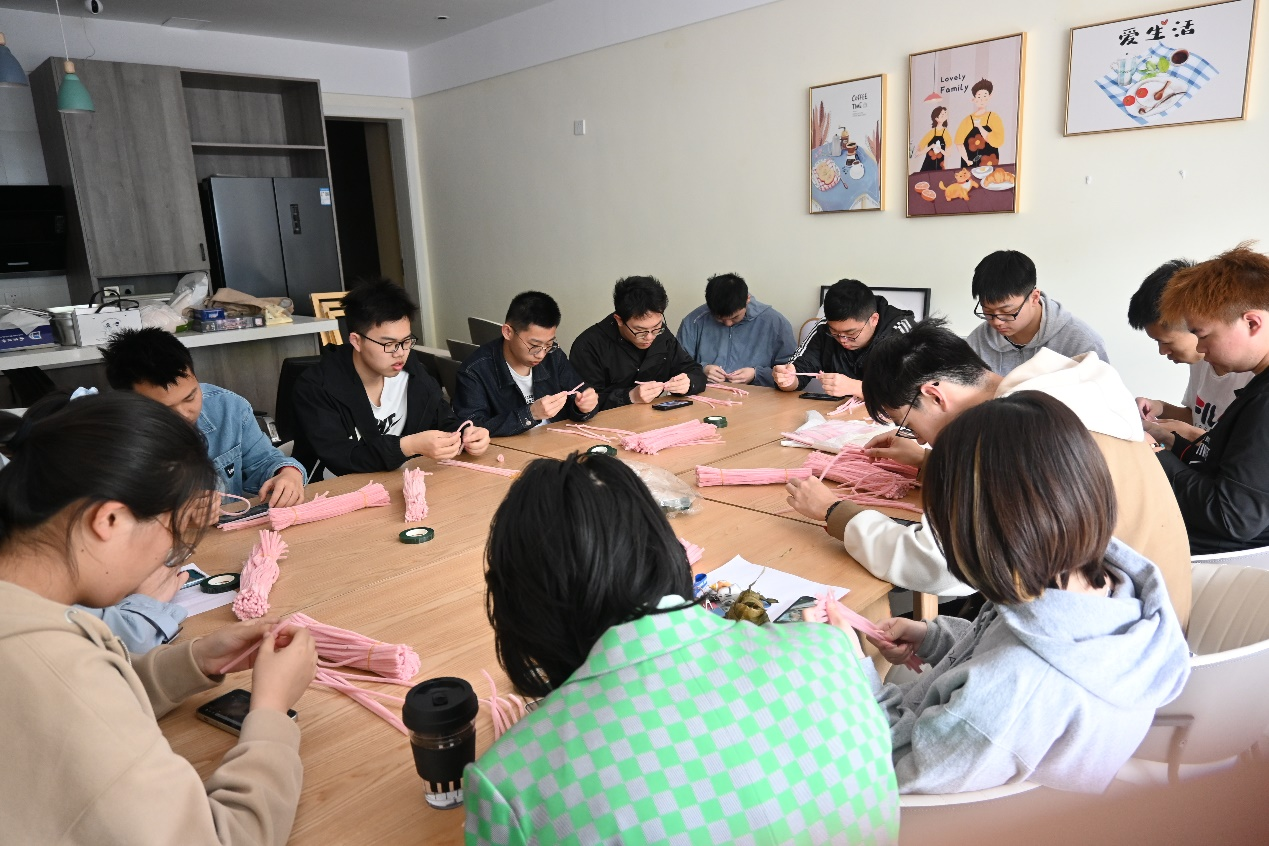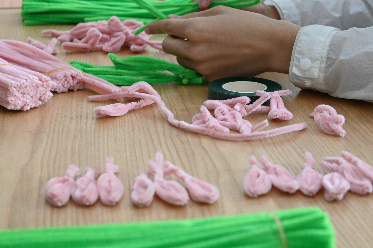 5月8日,班级团支部组织同学们在禾沐南医劳动教育实践基地制作郁金香花束。班级同学们围坐在一起,利用扭扭棒、花艺胶带、剪刀制作郁金香花束,制作过程看似简单但十分考验同学们的耐心和细致。花束全部完成之后,团支部收集好并在校园中展示,鼓励校内同学写上对母亲的祝福,传递感恩之心。