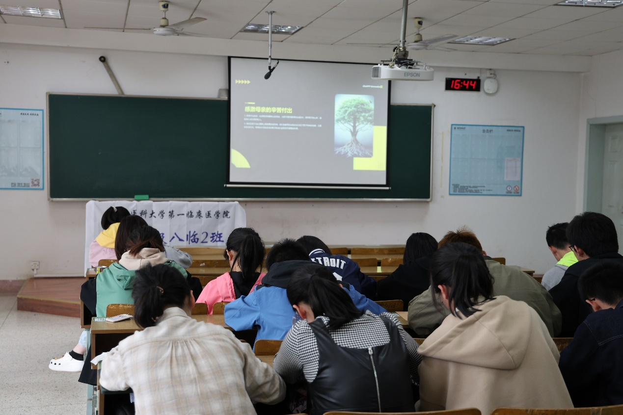 4月26日,班级团支部在博学楼B208教室举行了班会,组织委员徐戬向大家讲述了母亲在每个人成长过程中的辛劳付出,演讲结束后,同学们用事先准备好的信纸现场给母亲写一封信,写完后装入准备好的信封里。班级团支部将组织同学们寄出信件,把感恩与爱送给妈妈们。