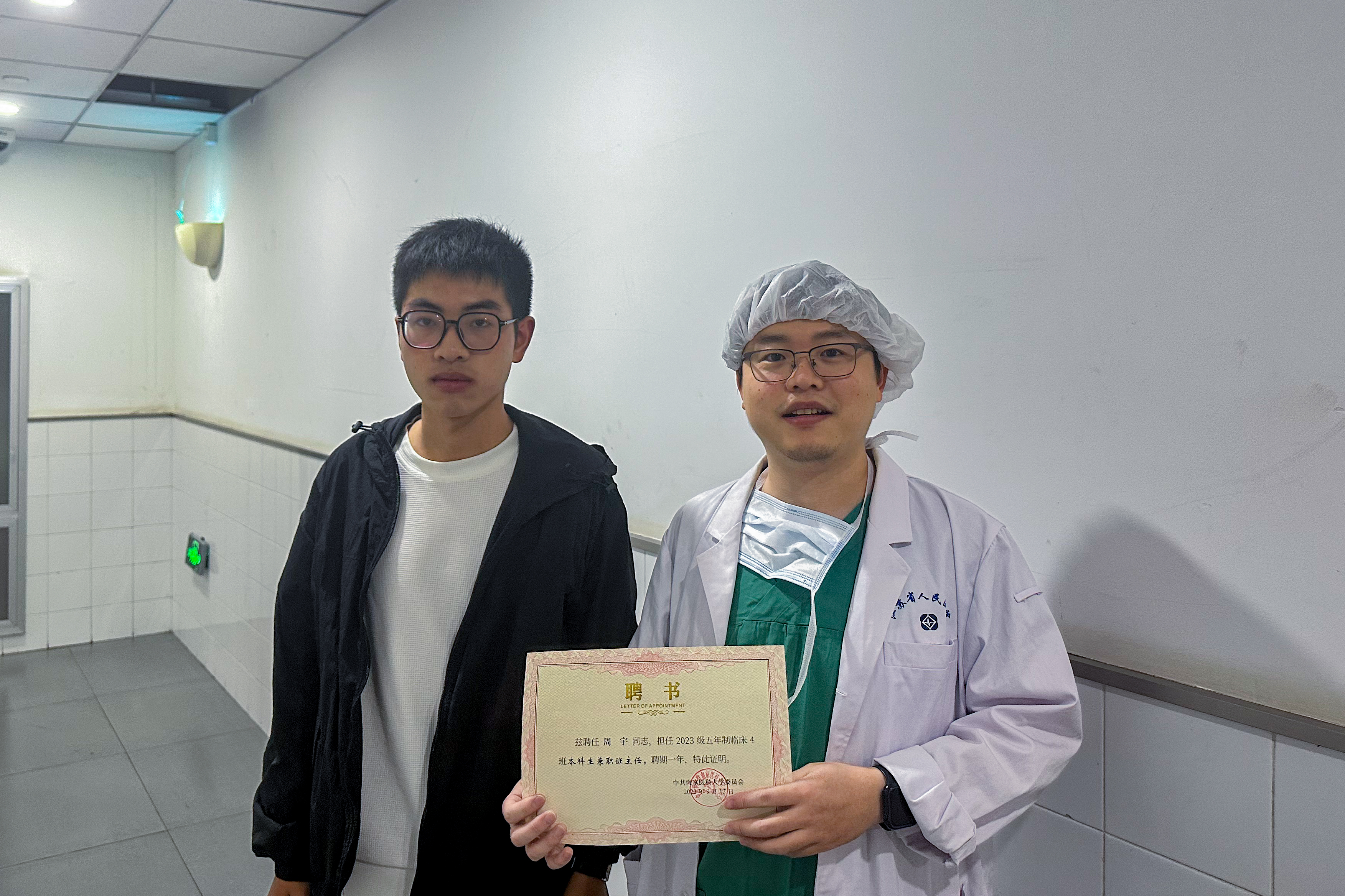 在交流环节,同学们就“本科生的临床实践如何进行”“风湿免疫科的优势”等问题与张教授进行了深入详细的探讨,同学们都深觉受益匪浅。最后,班长高兴代表全体4班同学,将成长导师聘任证书委交给张教授,并对其表示深深的感谢。