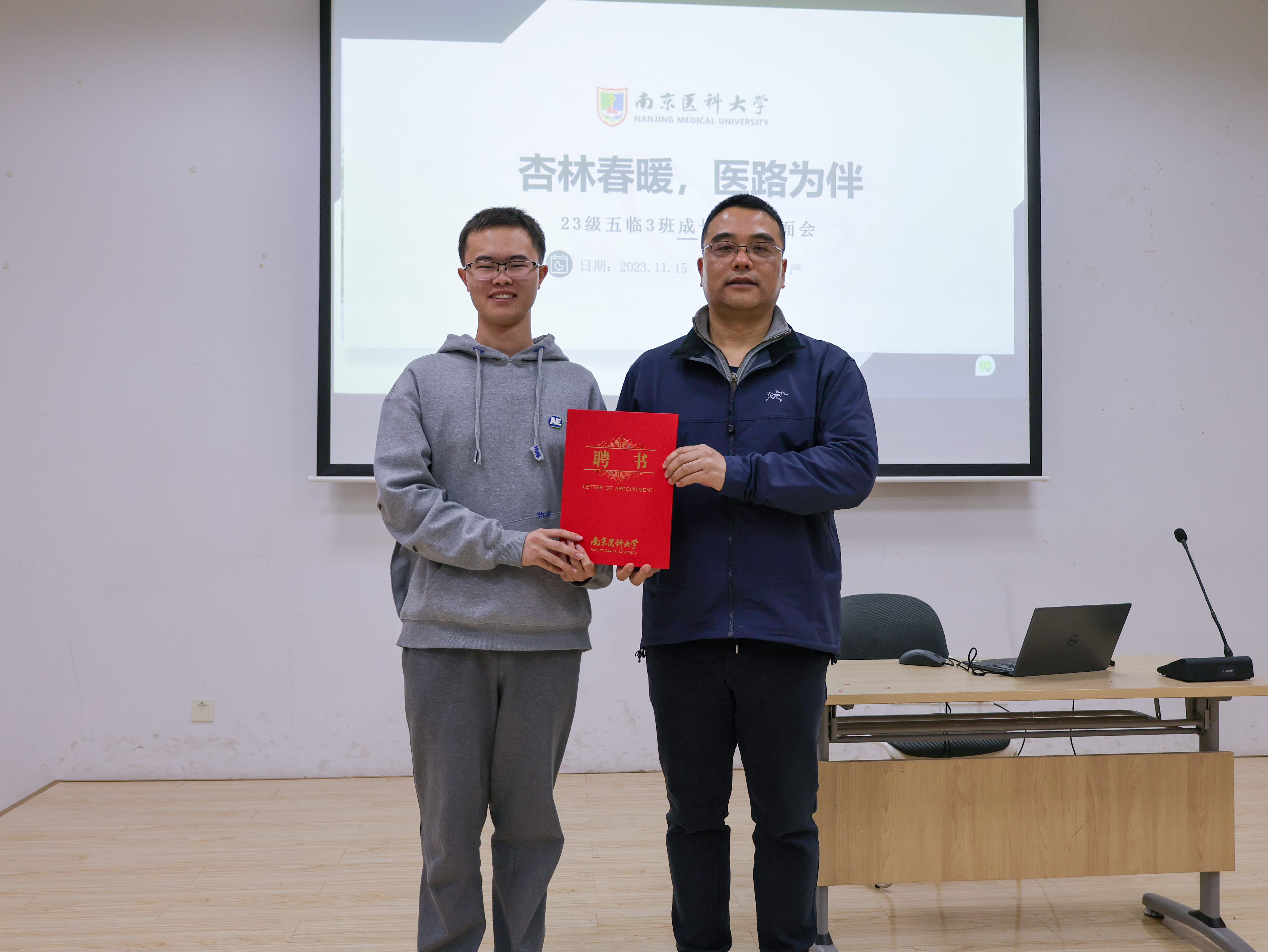 11月15日下午,第一临床医学院2023级临床医学3班在一站式报告厅开展了“杏林春暖,医路为伴”成长导师见面会。2023级临床医学3班成长导师、江苏省人民医院皮肤科主任教授鲁严,2023级临床医学3班全体学生参加了此次会议。