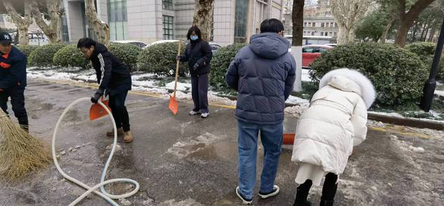 在南京连续降雪的情况下,校园内的道路被积雪覆盖,存在着滑倒和交通堵塞等安全隐患。以雪为令,第一临床医学院心内博和泌尿外科研究生党员们自发组织,志愿扫雪除冰,他们用扫把、铲子等工具,有条不紊地清理着积雪和结冰。尽管低温天气和结冰路面大大增加了清扫的难度,但大家主动担当、积极作为,经过一个小时的奋战,先知楼附近路段的地面得到了全面清理,有效服务学院师生安全、便捷的学习工作环境。