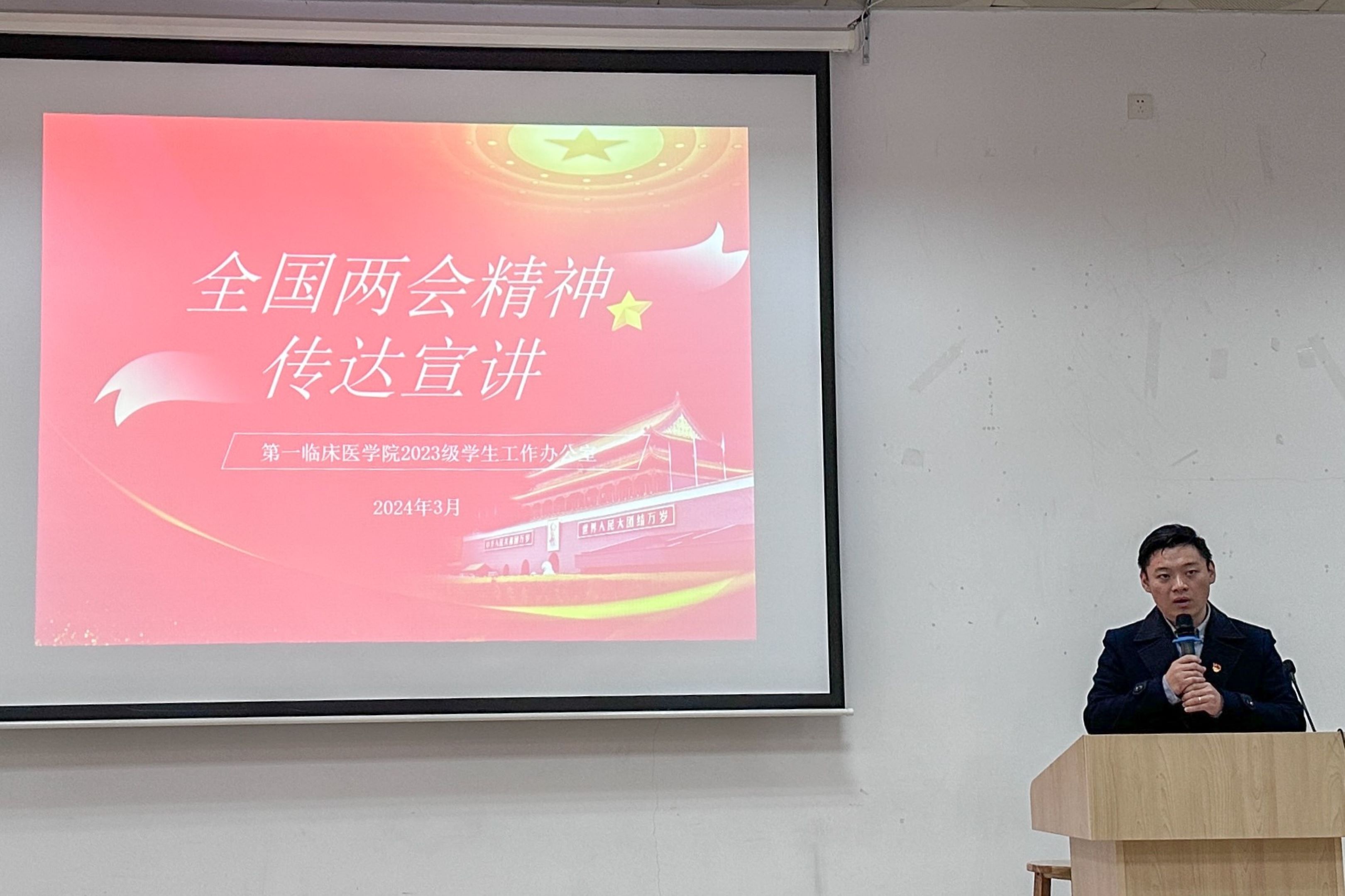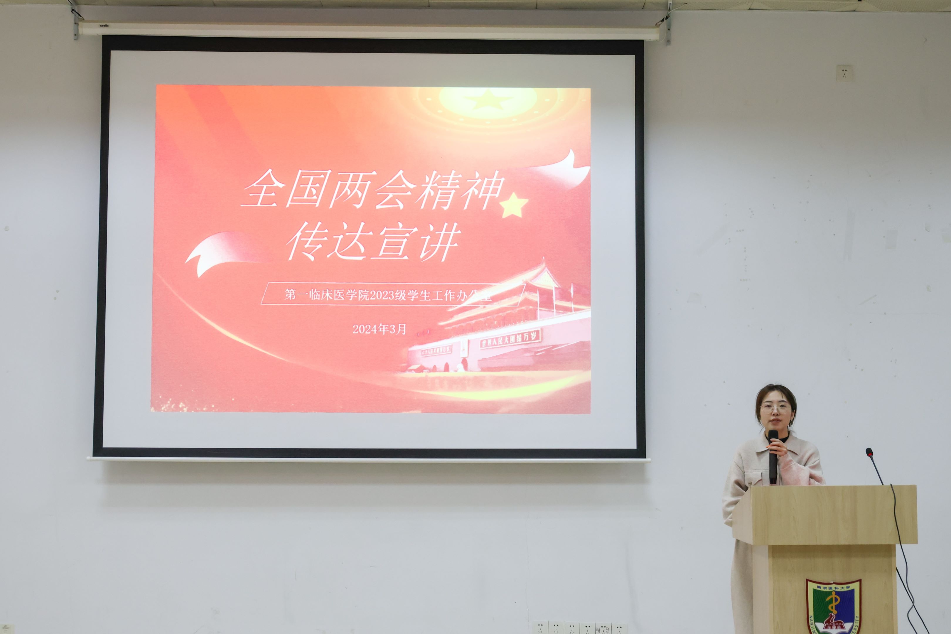 3月16日,为使同学们深入领悟“两会精神”,第一临床医学院面向2023级本科生全体学生开展了全国两会精神传达宣讲会。本次宣讲会由王榆、栾超老师主讲。