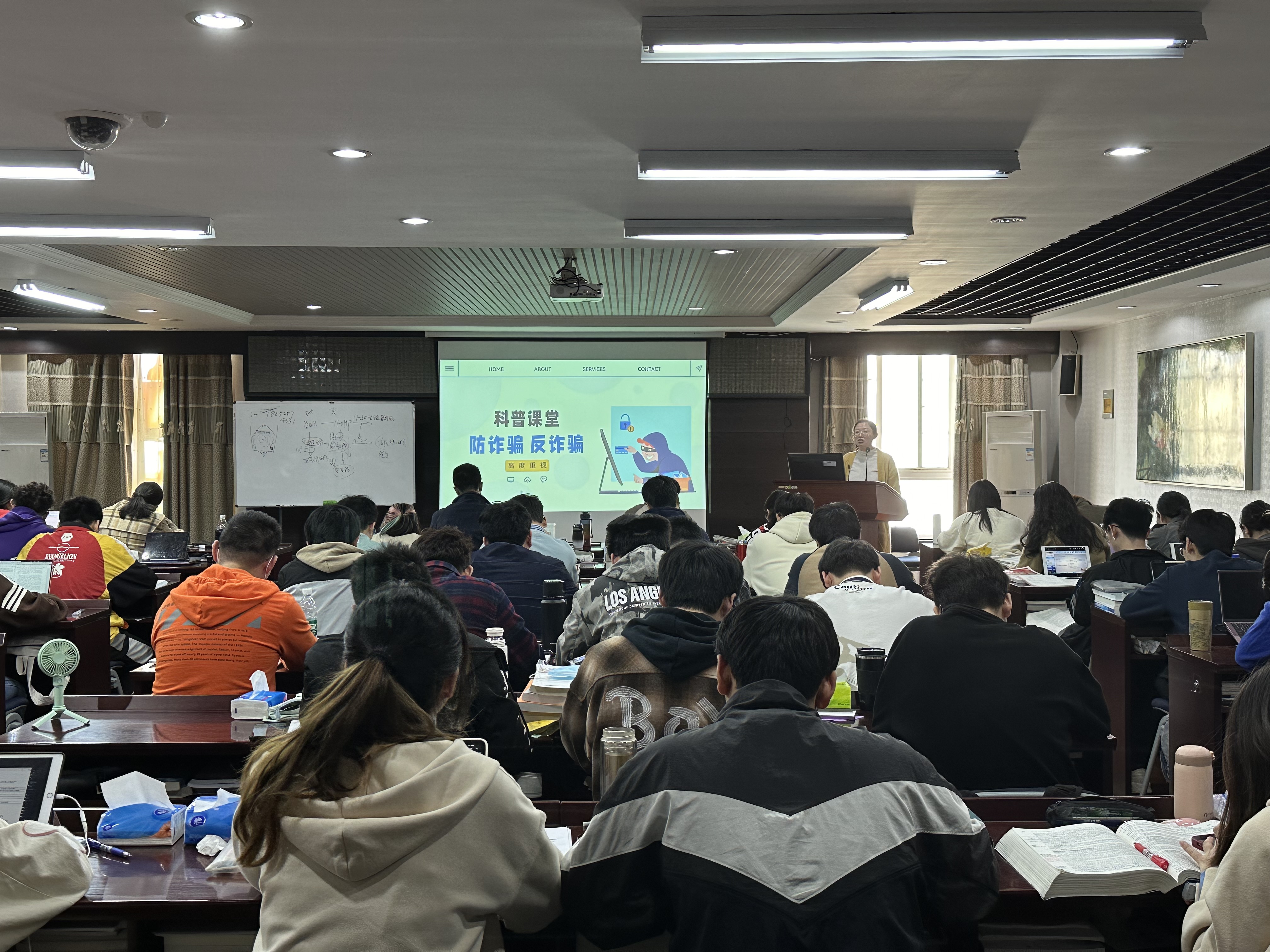 此外,陈琪波老师还对同学们的心理健康表示关心,希望同学们能够积极沟通处理好人际关系并欢迎同学们咨询。紧接着,陈琪波老师就电信诈骗问题向同学们提出应对措施,增强了同学们的反诈意识。