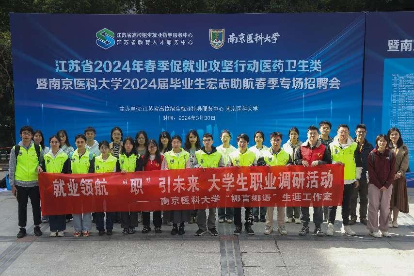 3月30日,江苏省2024年春季促就业攻坚行动医药卫生类暨南京医科大学2024届毕业生宏志助航春季专场招聘会在江苏省高校招生就业指导服务中心招聘大厅举行。为进一步提高学生职业发展规划意识与能力,形成学业与职业双向互动的良性机制,医·生涯工作室开展大学生职业调研活动,提升就业育人实效。