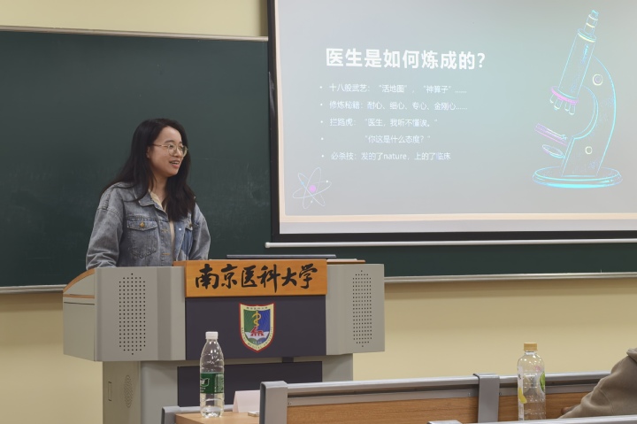 活动伊始,班主任吴婧老师以亲切和蔼的态度上台,向大家分享了自己的医学学习理念和对同学们未来漫漫医学路的期望。随后,每位同学也上台分享了自己对未来的憧憬以及学业规划,展现了对医学事业的热爱和对未来的坚定信心。紧接着,吴老师带领大家观看了学校的医师节宣传片。这部宣传片不仅展示了医学职业的崇高与责任,也激励着同学们为实现自己的医学梦想而努力。最后,吴老师就同学们的职业生涯规划给出了宝贵的指导和建议。同学们听得聚精会神,收获颇丰。