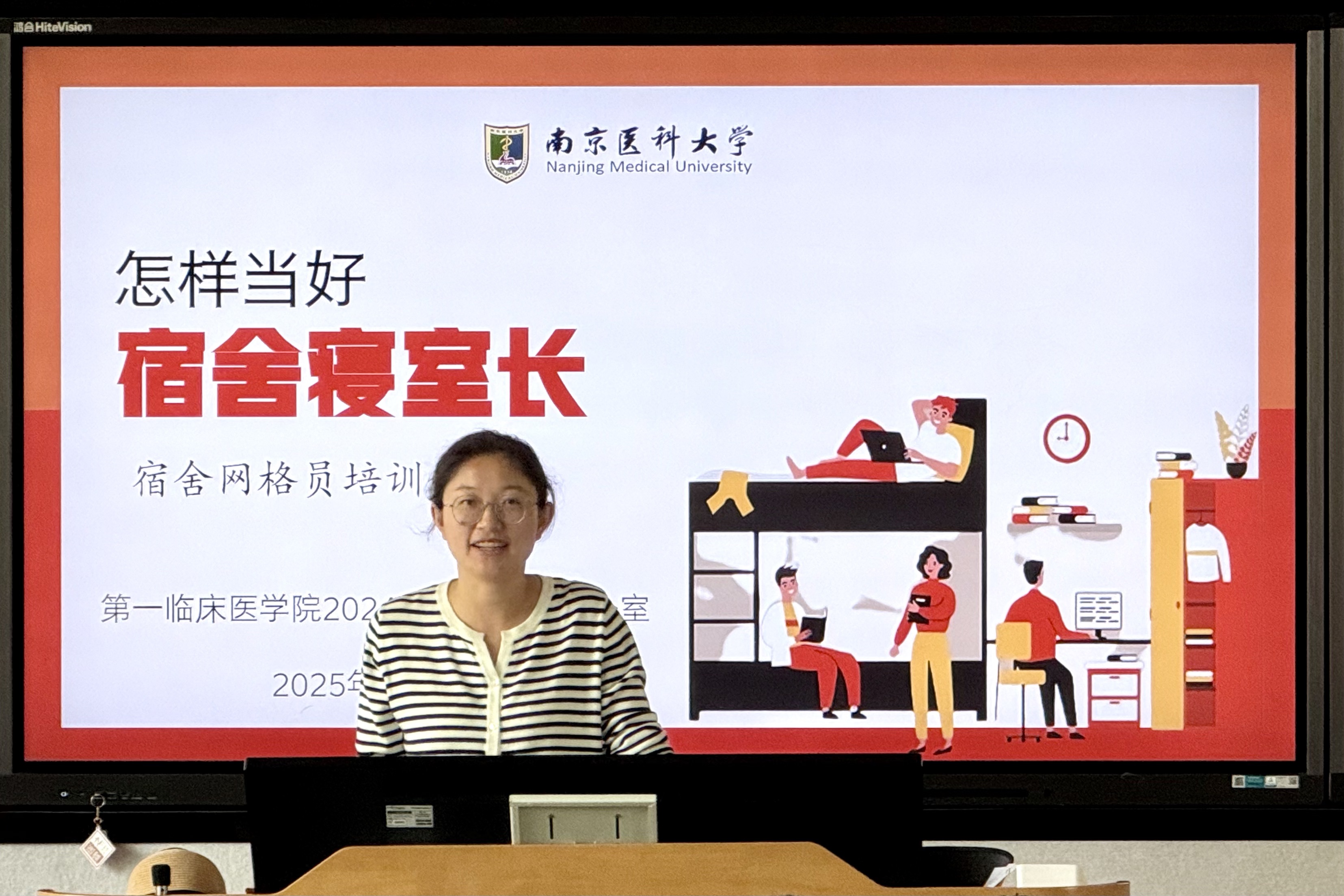 本次培训聚焦基础职责、安全应急、心理健康、文化建设四大核心内容。陈琪波老师首先强调了宿舍寝室长的重要作用:作为连接学院与学生的桥梁纽带,需落实信息传达协调和日常事务管理的基本工作。紧接着,结合校园安全案例,她就安全管理与反诈方面对安全应急职责做了更具体深入的解释。而后又引导寝室长关注室友心理状态,做好心理动态监测和矛盾调解。最后,老师鼓励各寝室长开展多样的宿舍活动,培育积极向上的宿舍文化,营造和谐良好的宿舍氛围。
