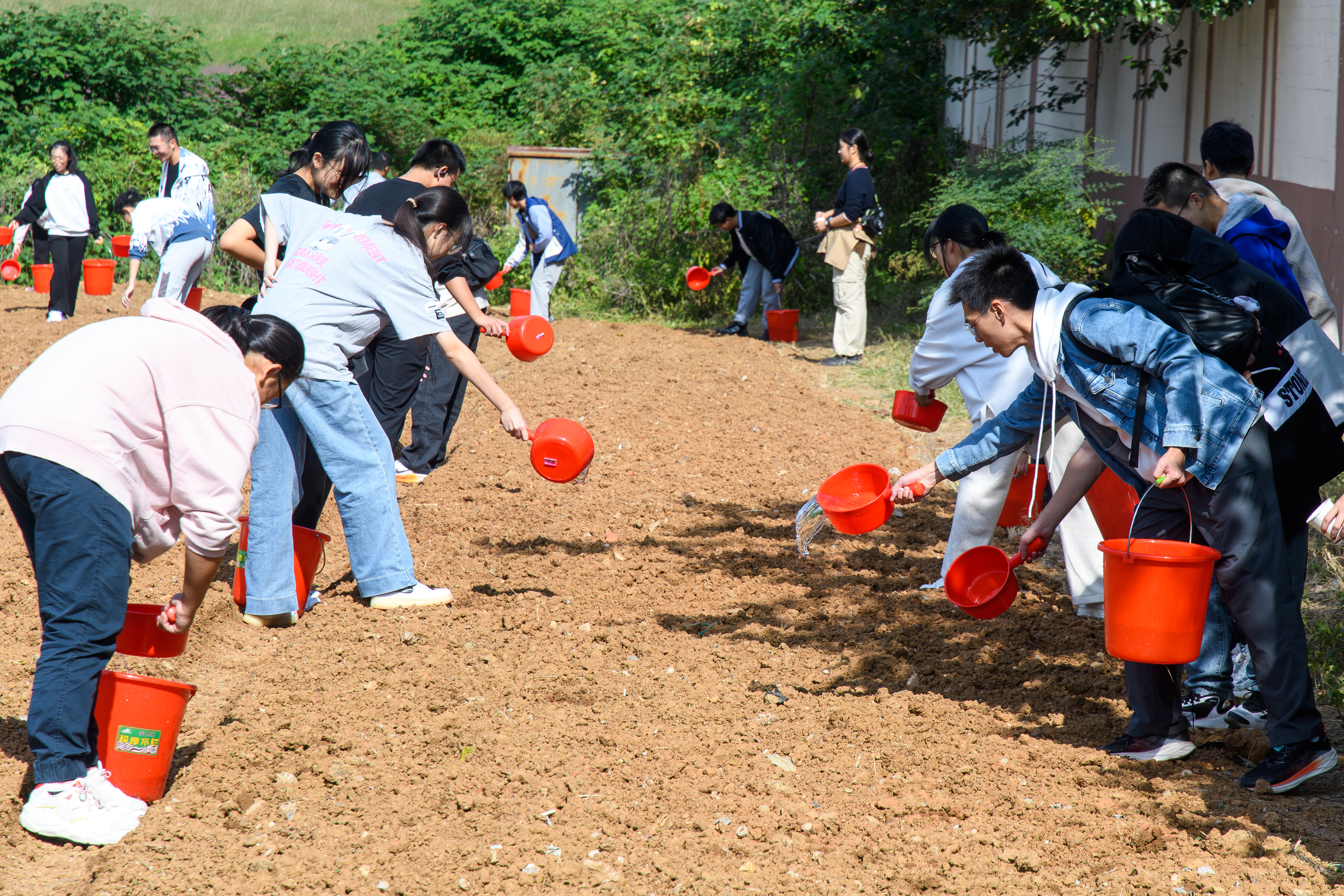 在学院副书记、副院长吴雅娜老师简短而高效的组织动员之后,参与本次活动同学们进入田地。同学们在指导教师的专业讲解与示范下,掌握了播种、覆土及浇水的关键技术要领。随后,同学们以饱满的热情投入到历时一小时的劳动实践中。大家分工明确,通力协作,有序完成了近750平方米土地的油菜花种子播种任务,展现了第一临床医学院学子良好的精神风貌与团队协作精神。