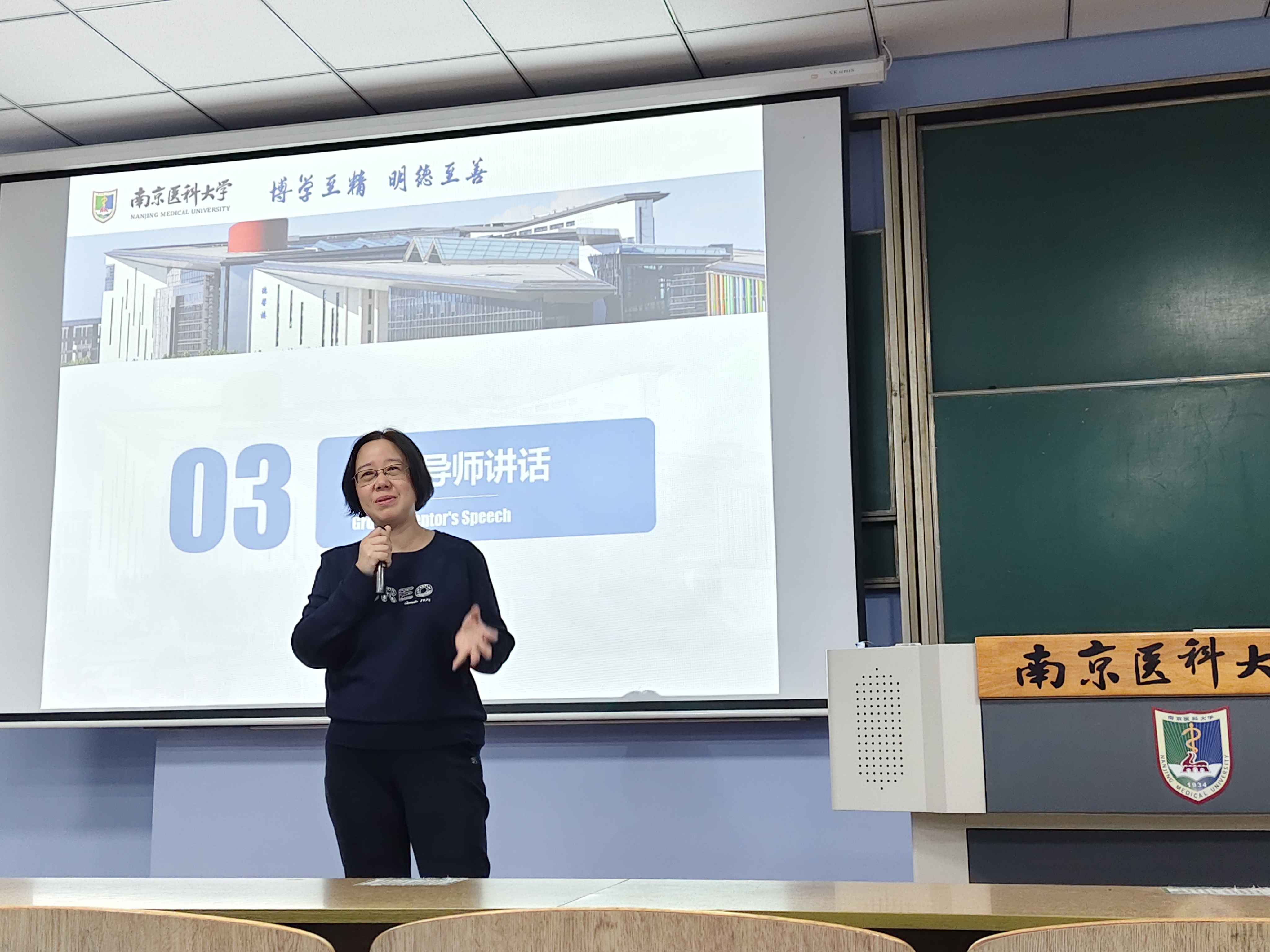 会议由团支书主持开始,班长首先汇报了同学们入学以来在南医的学习和生活经历,向导师们介绍了5班这一凝聚力强、团结友爱的班集体。随后,王嫱老师与王振老师为军训优秀个人颁发奖状。接下来,王嫱教授从自身经历出发,以多年的一线经验向同学们详细介绍了临床与科研方面的知识,亲切指导同学们如何在大学五年中学会自主学习,提升如阅读与数据提炼、临床基础技能等能力。王振老师则以外科视角向同学们介绍了如何为未来的职业规划锻炼临床基础能力,并从“博”和“专”的角度为同学们未来的学习方向提供了参考。